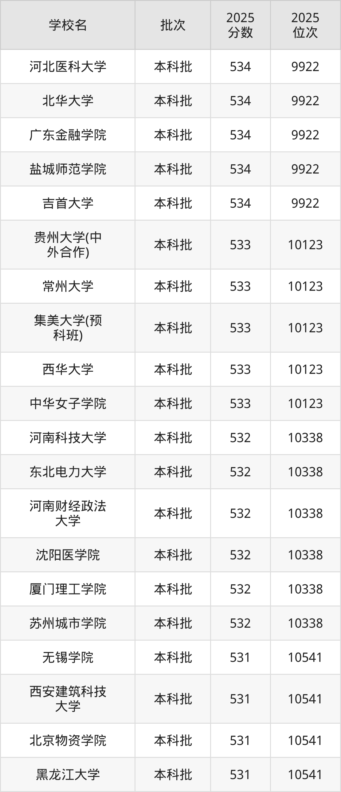 这些都是2026年高考历史类10339名~10541名考生可以报考的大学,更多学校名单如下表所示: