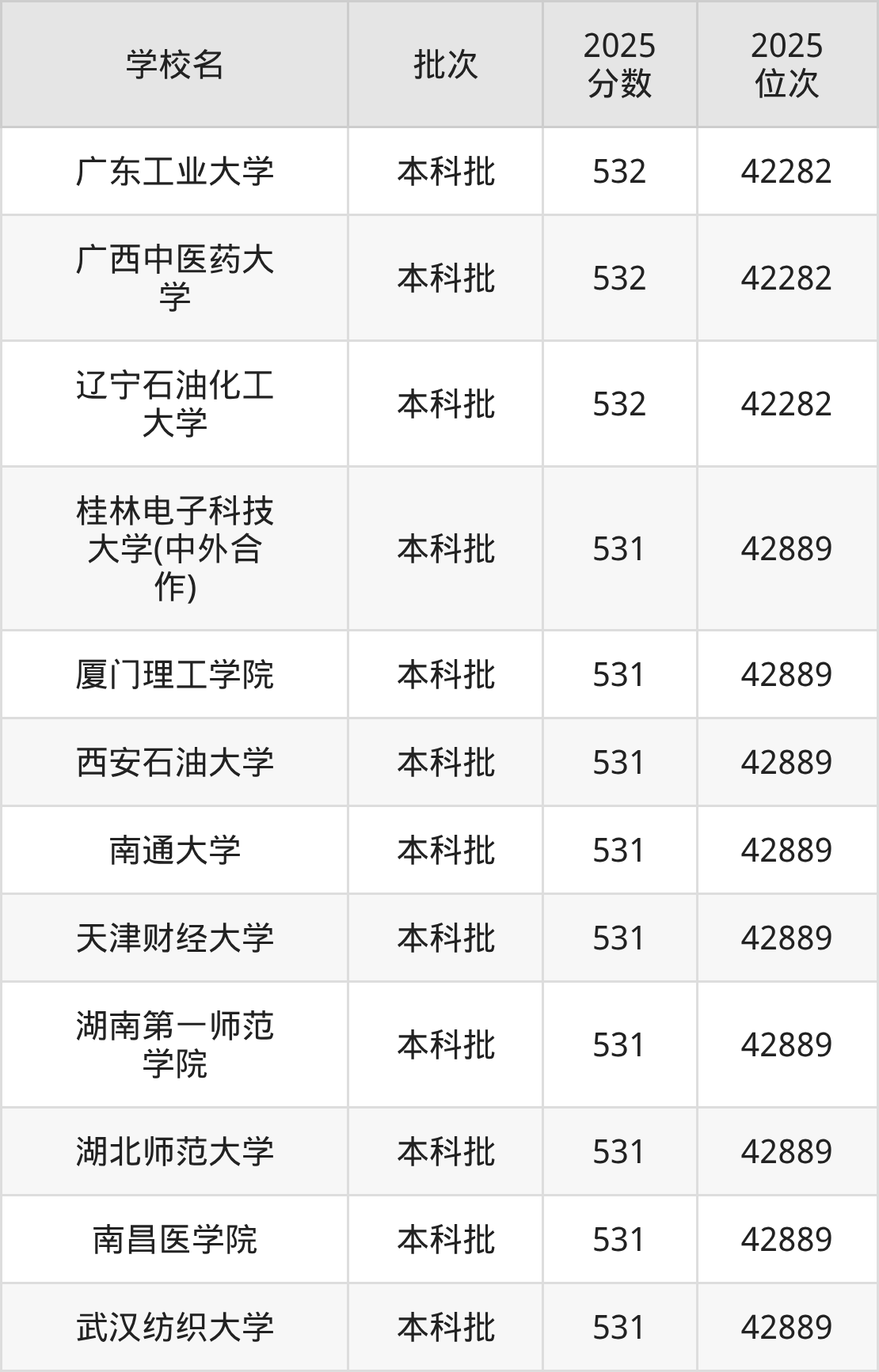 2025年重庆高考物理类531分(42283名~42889名)能上的大学有武汉纺织大学、南昌医学院、湖北师范大学、湖南第一师范学院等。