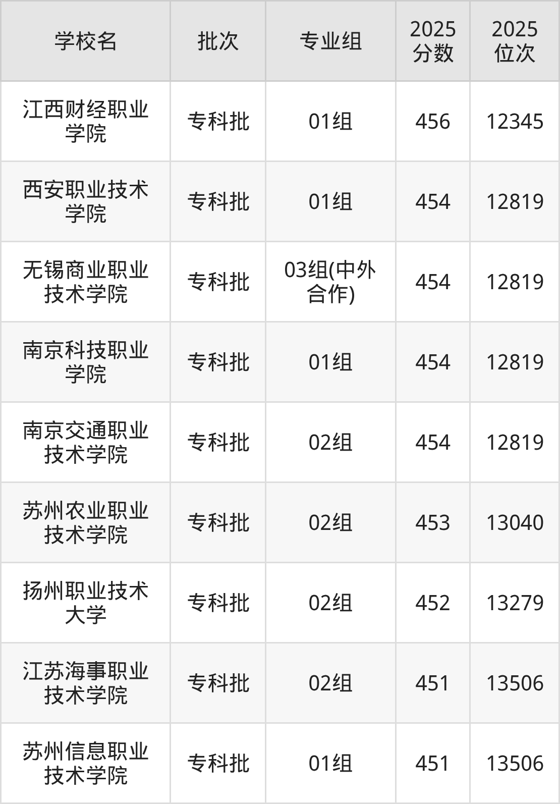 2025年江苏高考历史类453分(12820名~13040名)能上的大学有苏州农业职业技术学院02组。