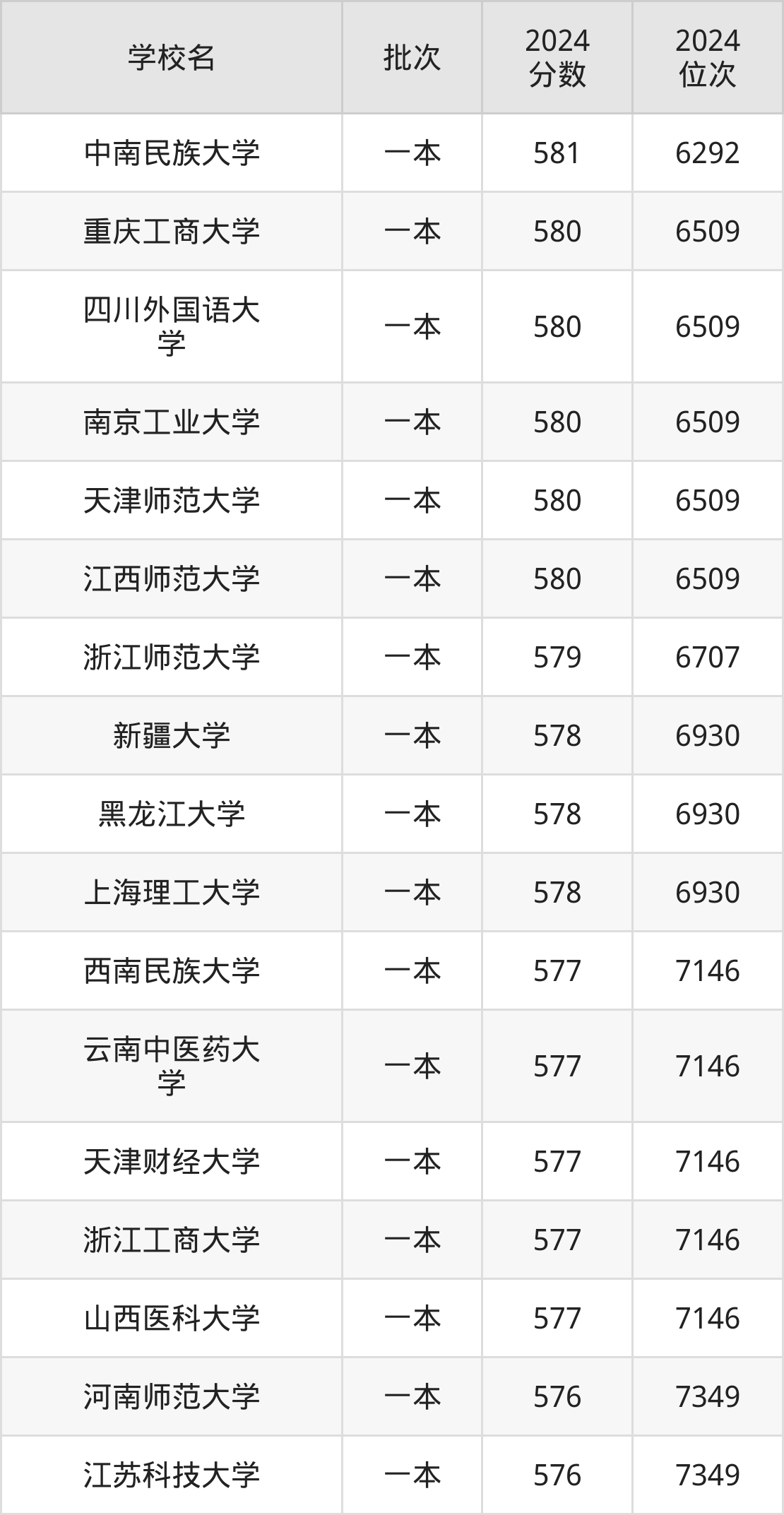 2024年云南高考文科578分(6708名~6930名)能上的大学有上海理工大学、黑龙江大学、新疆大学。