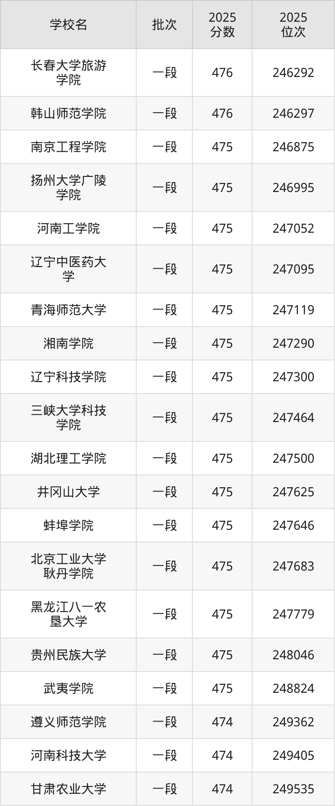 这些都是2026年高考246784名~249285名考生可以报考的大学,更多学校名单如下表所示: