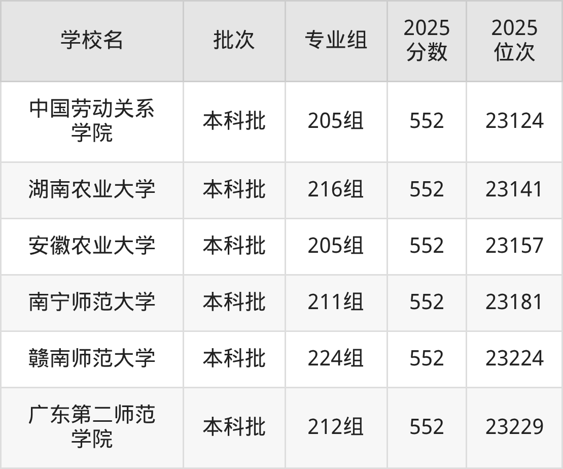 这些都是2026年高考历史类22301名~22812名考生可以报考的大学,更多学校名单如下表所示:
