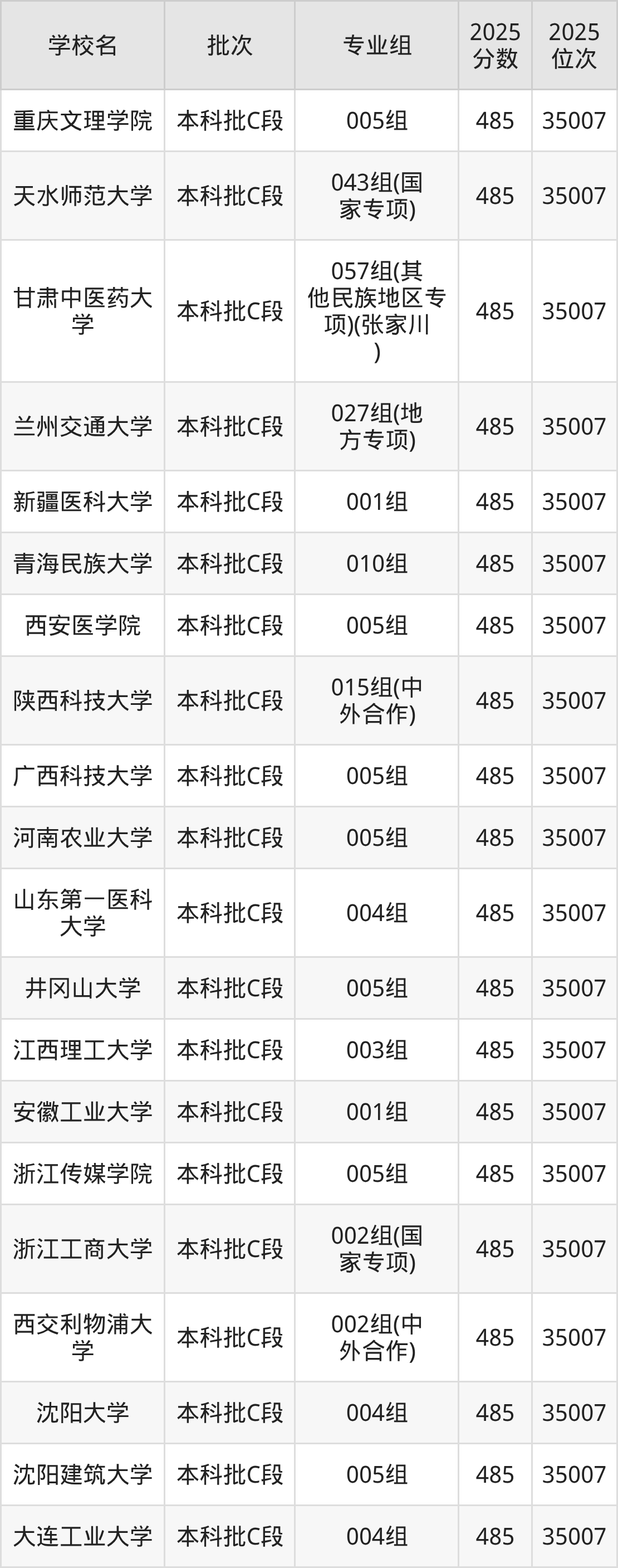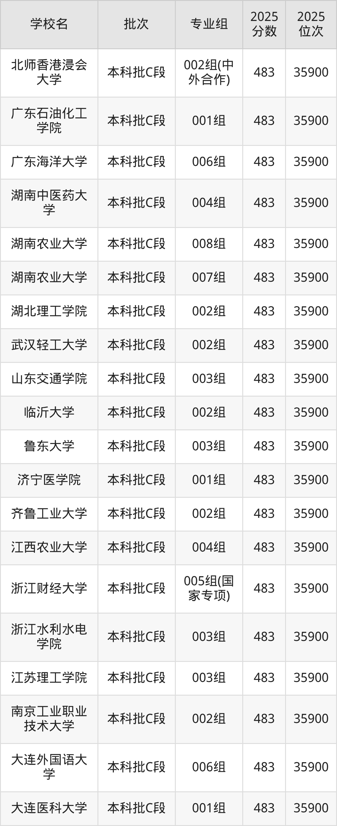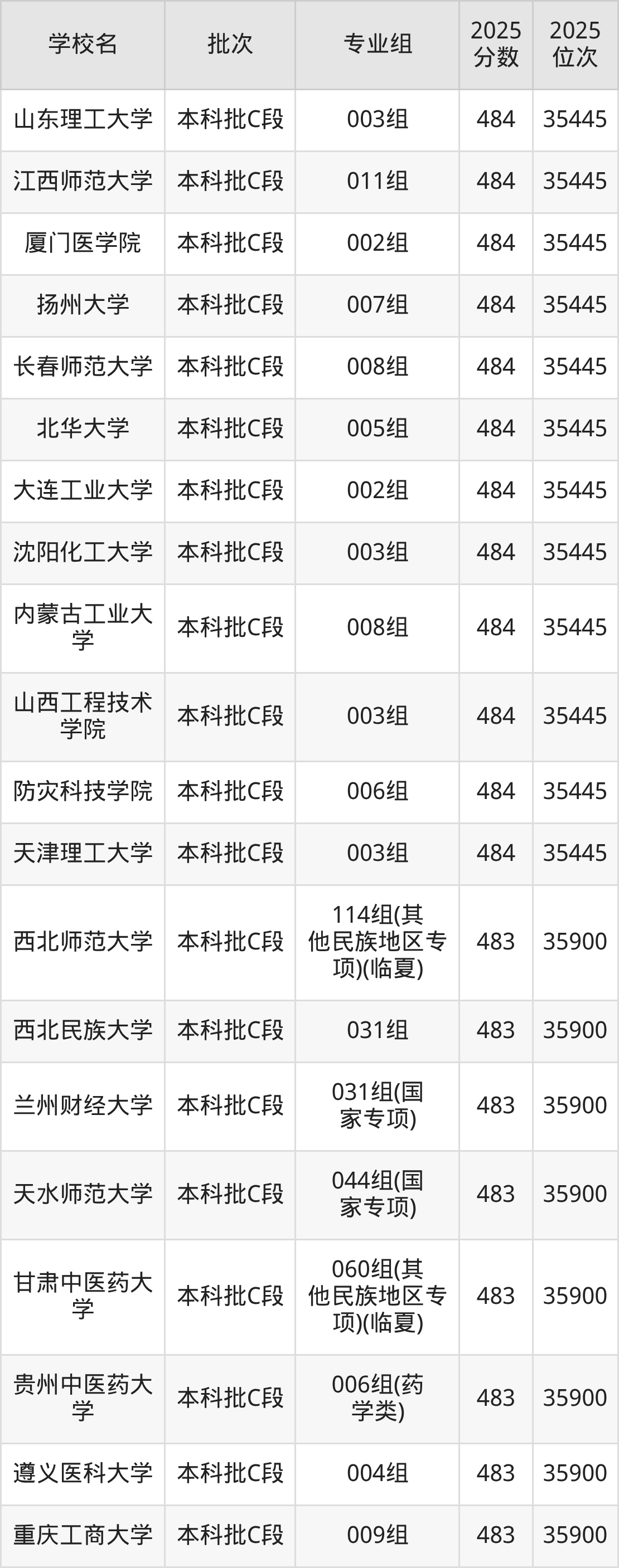 2025年甘肃高考历史类483分(10679名~10854名)能上的大学有赣东学院001组、南昌师范学院001组、西南民族大学002组、新疆师范大学005组等。
