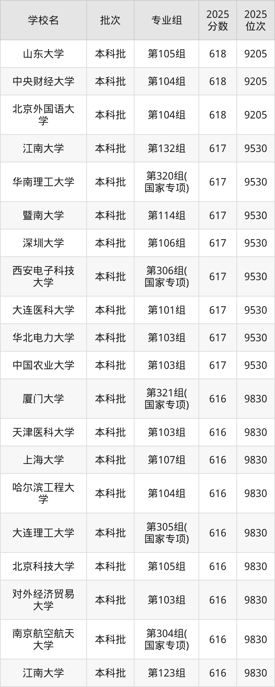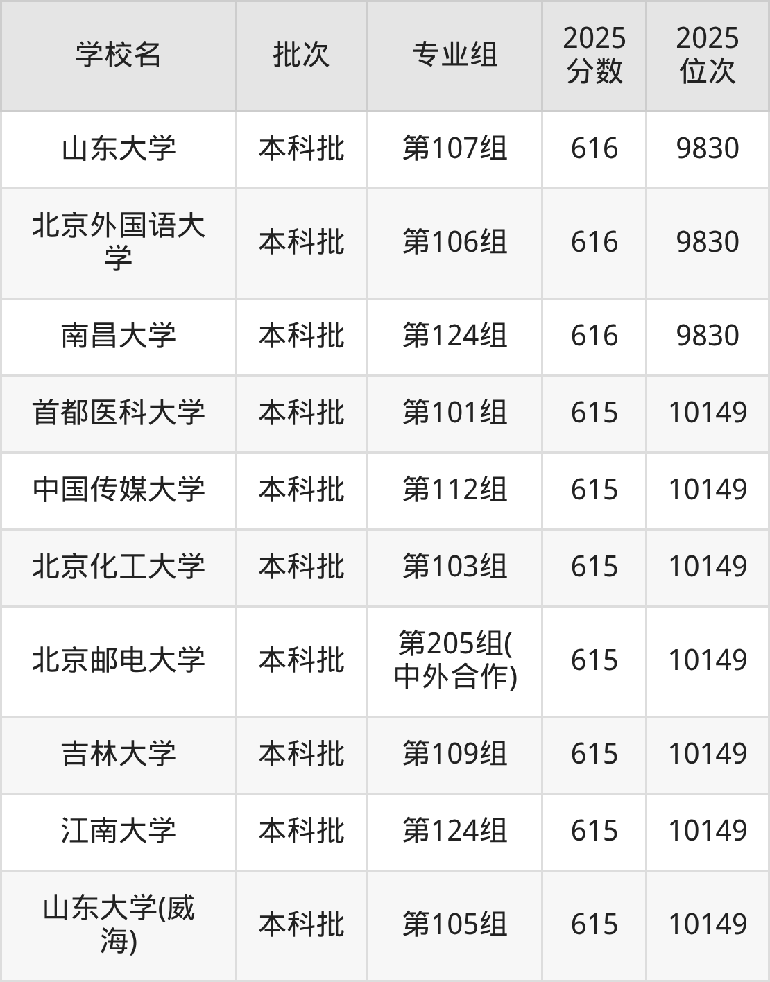 另外录取位次低于该区间(较稳妥)的有山东大学(威海)第105组(10149名)、江南大学第124组(10149名)等;录取位次高于该区间(可冲)的有中国农业大学第103组(9530名)、华北电力大学第103组(9530名)等。