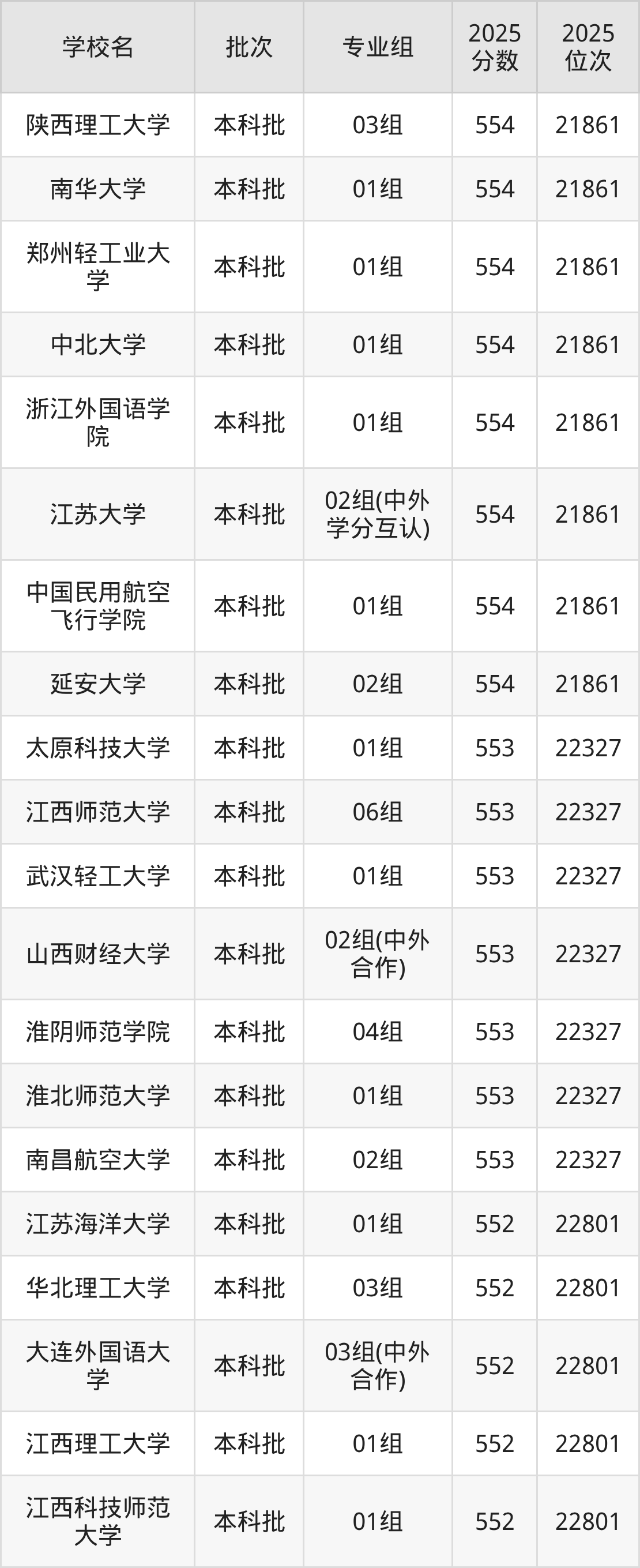 2025年江苏高考物理类552分(216名~228名)能上的大学有南京林业大学16组(中外合作)(南京校区)、南京审计大学11组(中外合作)、南京晓庄学院17组、南通大学26组等。
