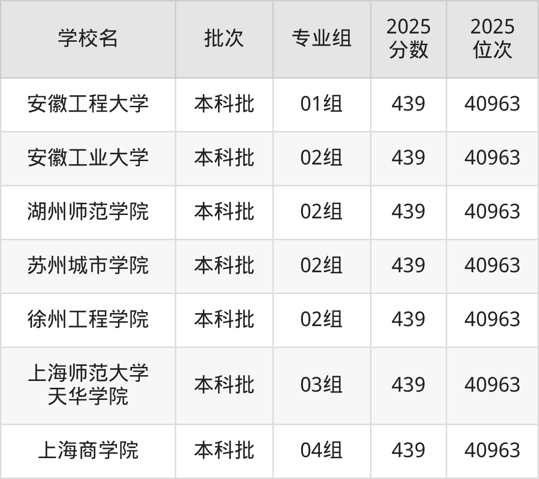 2025年上海高考441分(40204名~40472名)能上的大学有上海第二工业大学03组、沈阳工业大学02组、徐州工程学院03组、东南大学成贤学院01组等。