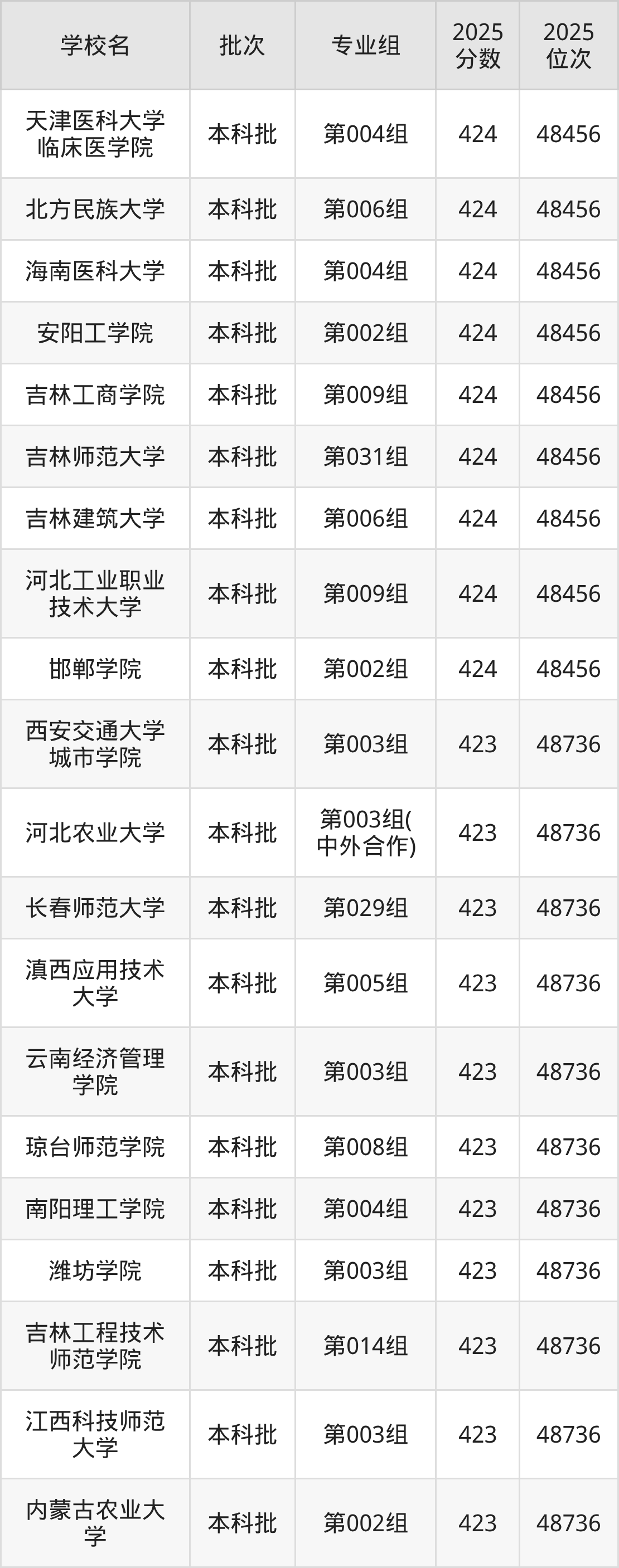 这些都是2026年高考物理类48737名~49045名考生可以报考的大学,更多学校名单如下表所示:
