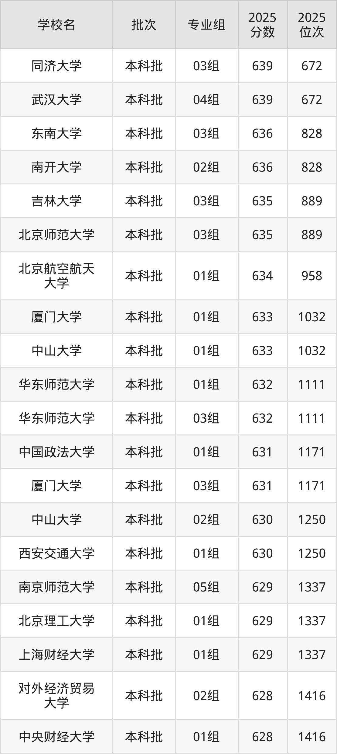 2025年江苏高考历史类630分(1172名~1250名)能上的大学有中山大学02组、西安交通大学01组。