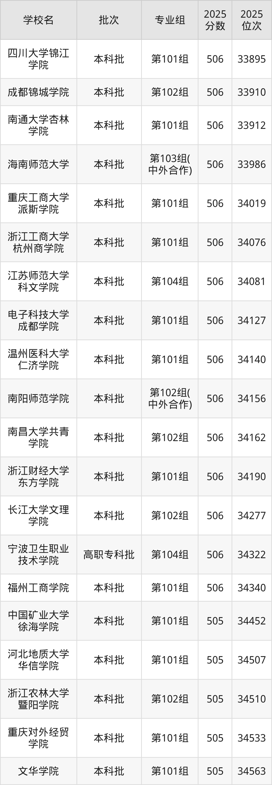 这些都是2026年高考历史类34370名~35019名考生可以报考的大学,更多学校名单如下表所示: