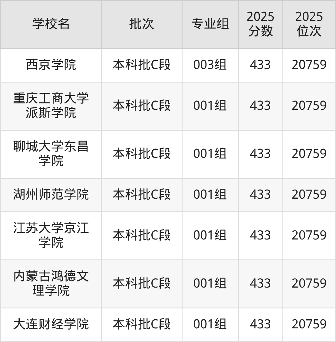 这些都是2026年高考历史类20117名~20327名考生可以报考的大学,更多学校名单如下表所示: