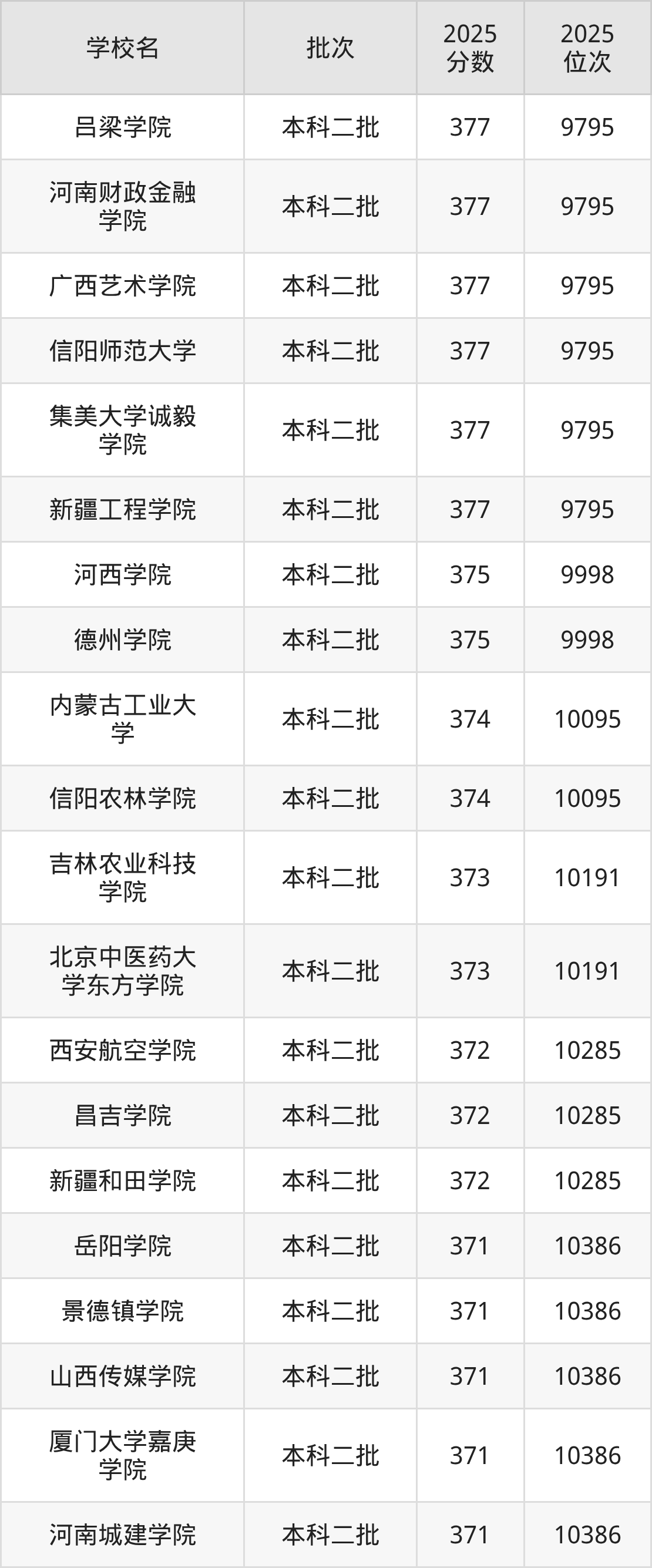 这些都是2026年高考文科10286名~10386名考生可以报考的大学,更多学校名单如下表所示: