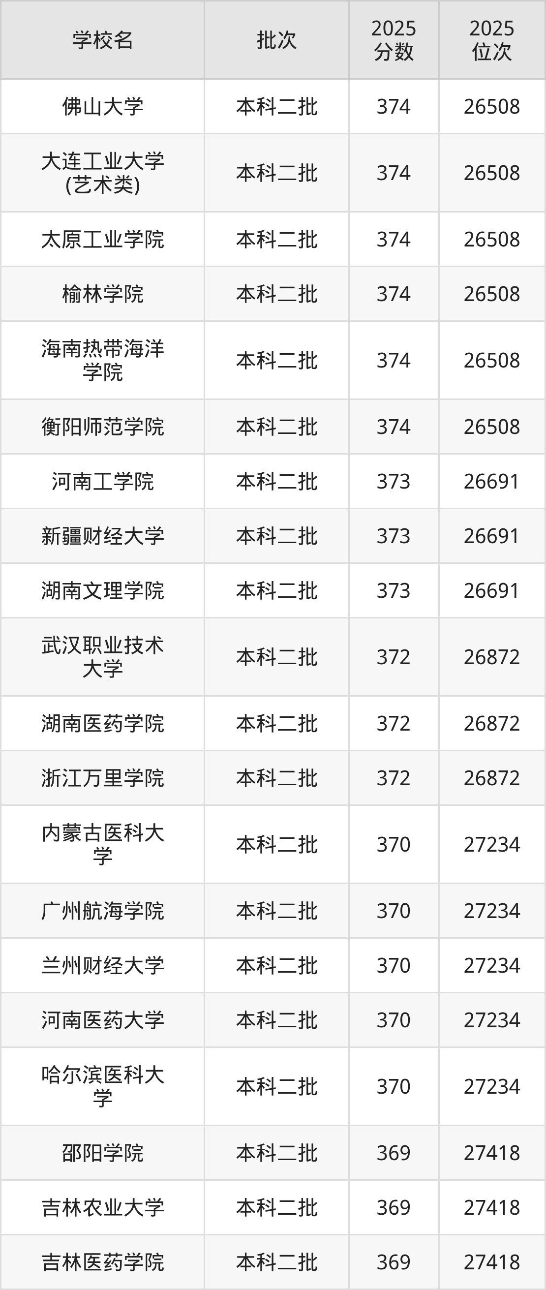 这些都是2026年高考理科26873名~27053名考生可以报考的大学,更多学校名单如下表所示: