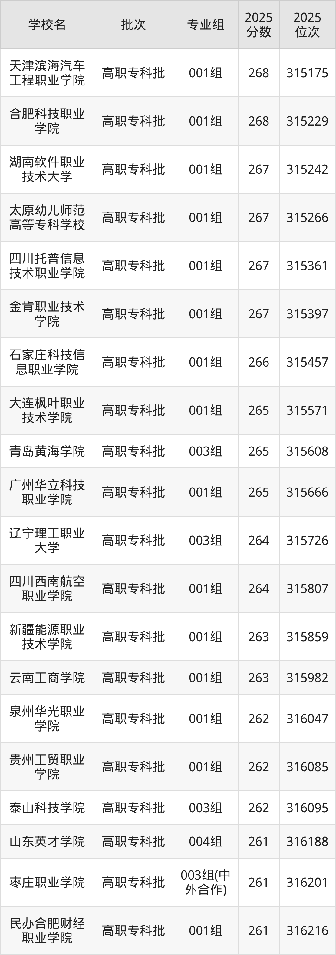 另外录取位次低于该区间(较稳妥)的有辽宁理工职业大学003组(315726名)、四川西南航空职业学院001组(315807名)等;录取位次高于该区间(可冲)的有石家庄科技信息职业学院001组(315457名)、金肯职业技术学院001组(315397名)等。