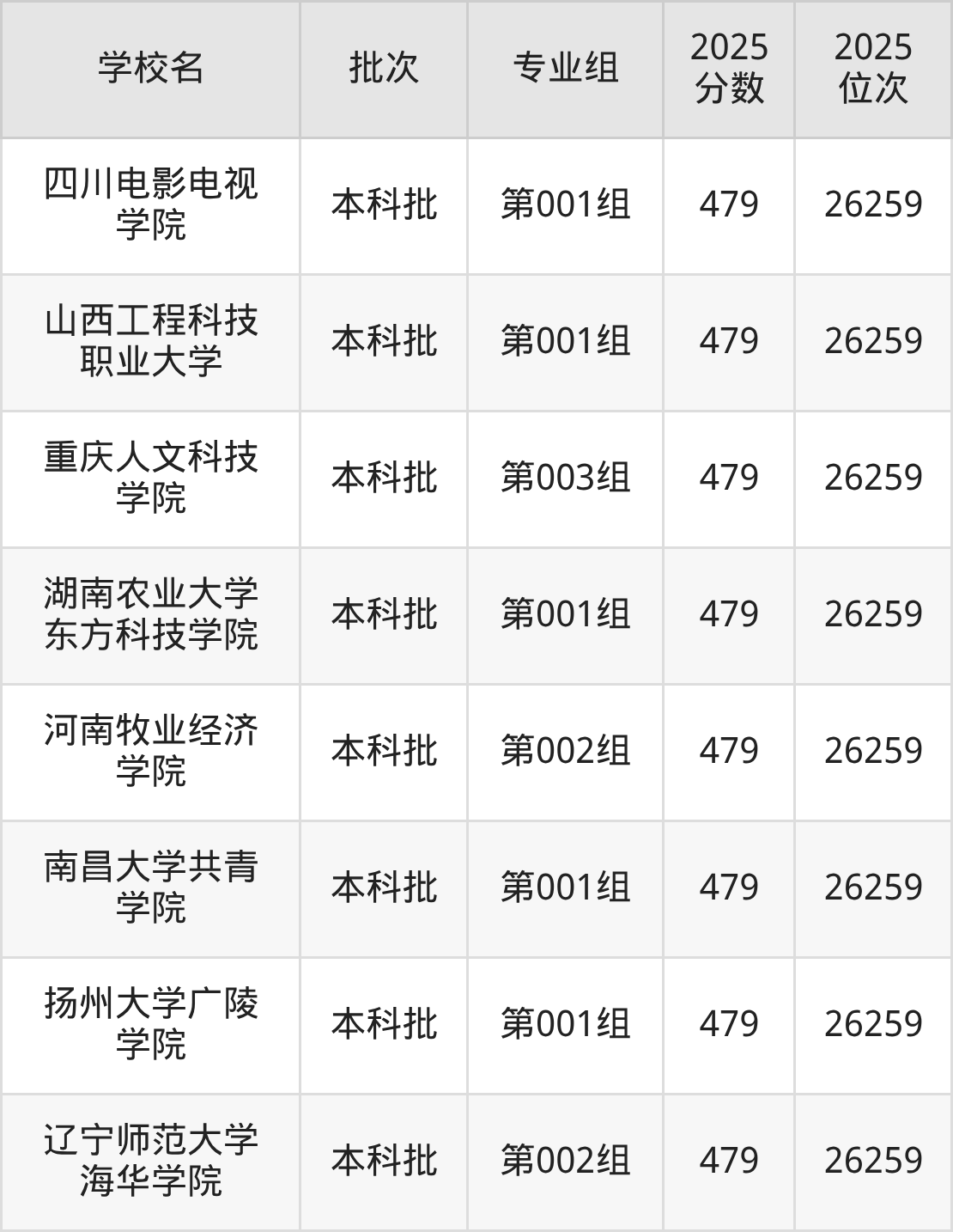 这些都是2026年高考历史类25706名~26003名考生可以报考的大学,更多学校名单如下表所示: