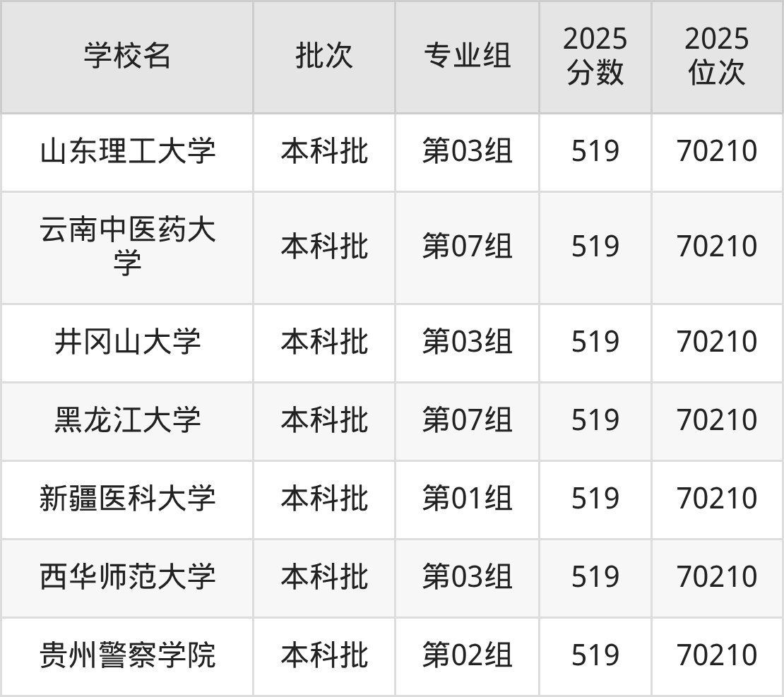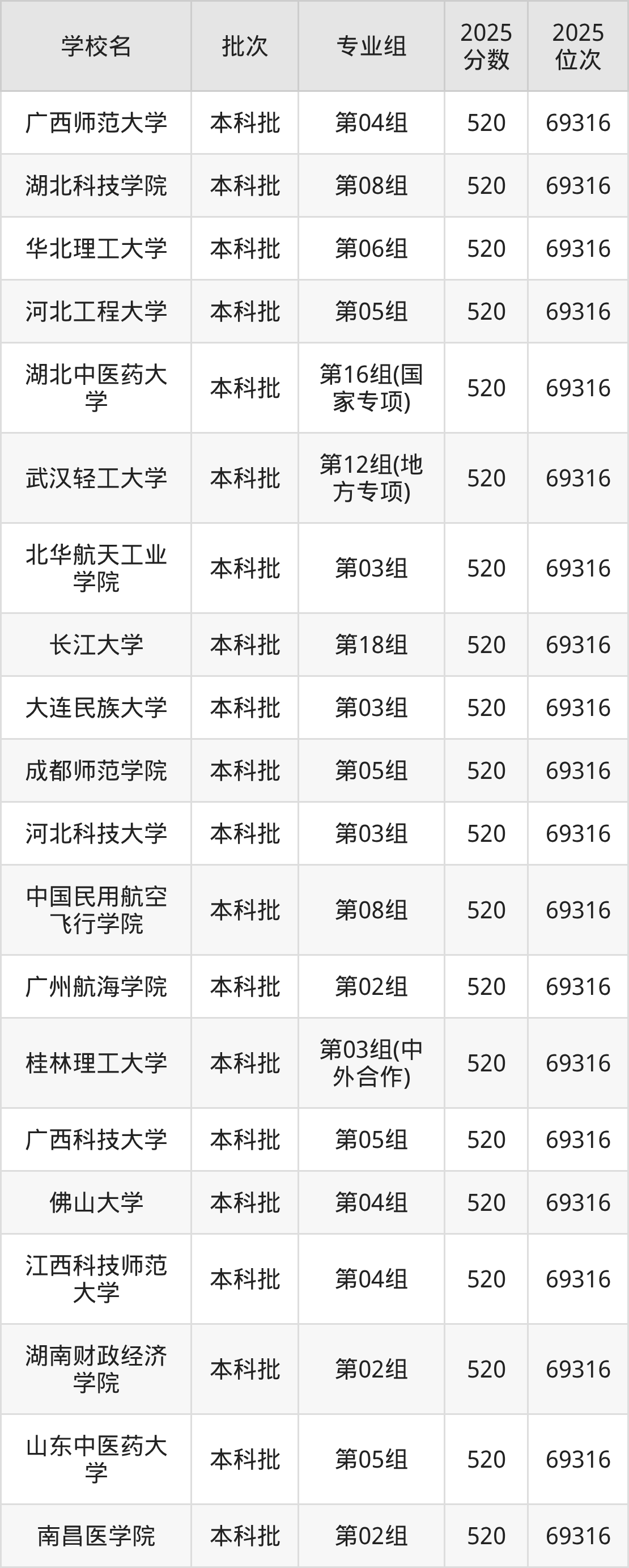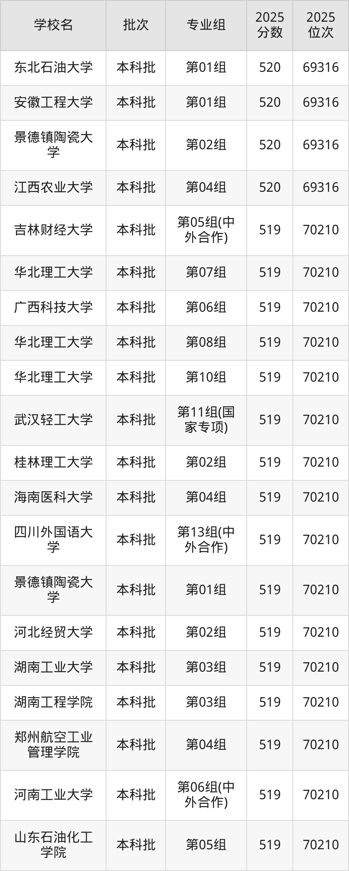 这些都是2026年高考物理类69317名~70210名考生可以报考的大学,更多学校名单如下表所示: