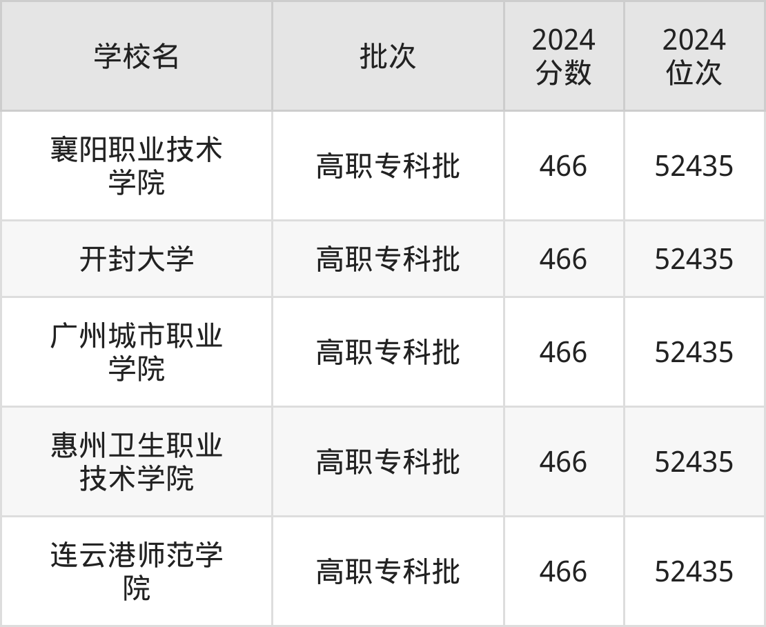 2024年云南高考文科466分(51904名~52435名)能上的大学有开封大学、连云港师范学院、襄阳职业技术学院、惠州卫生职业技术学院等。