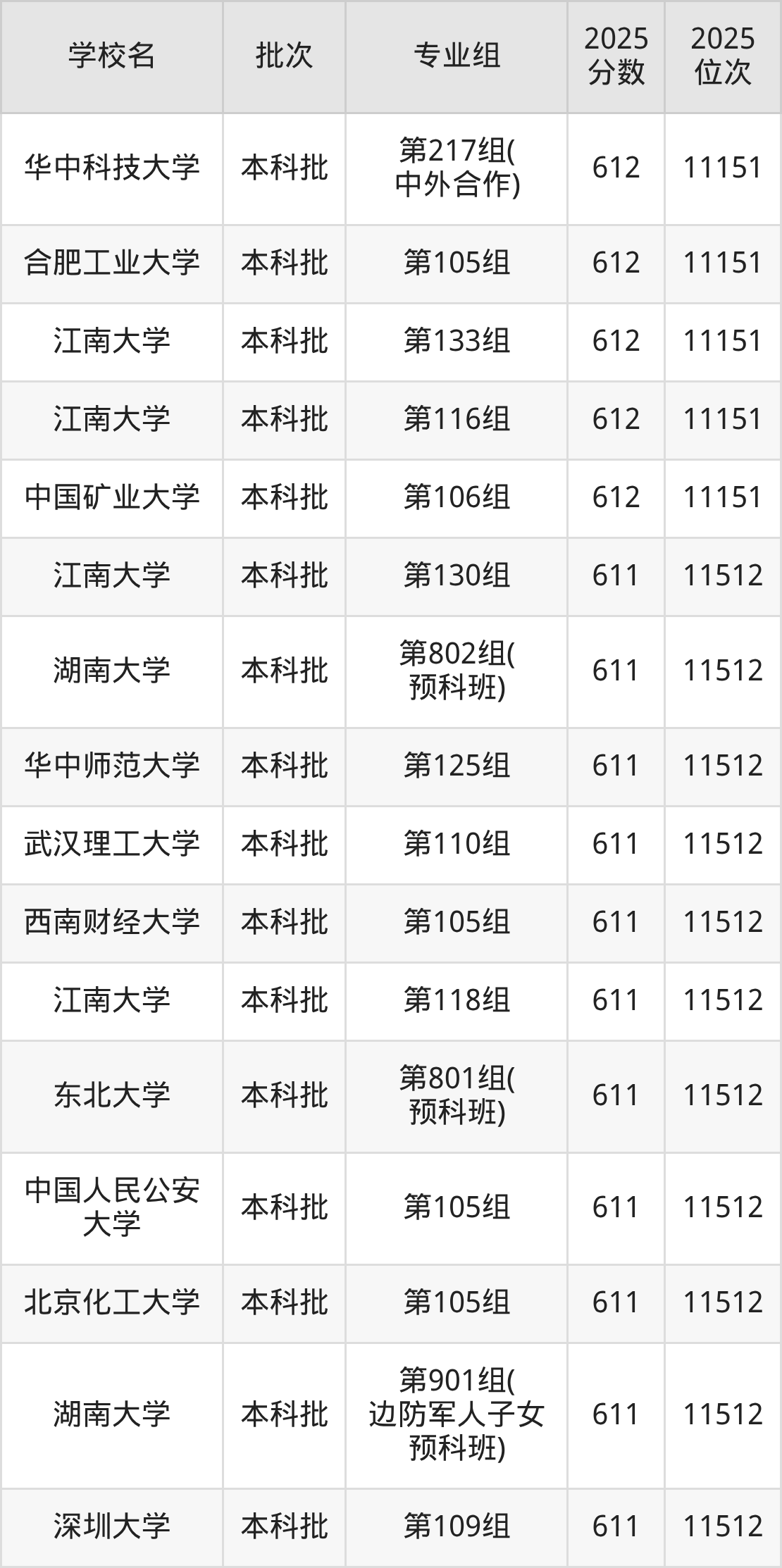 二、湖南612分位次排名能上的大学