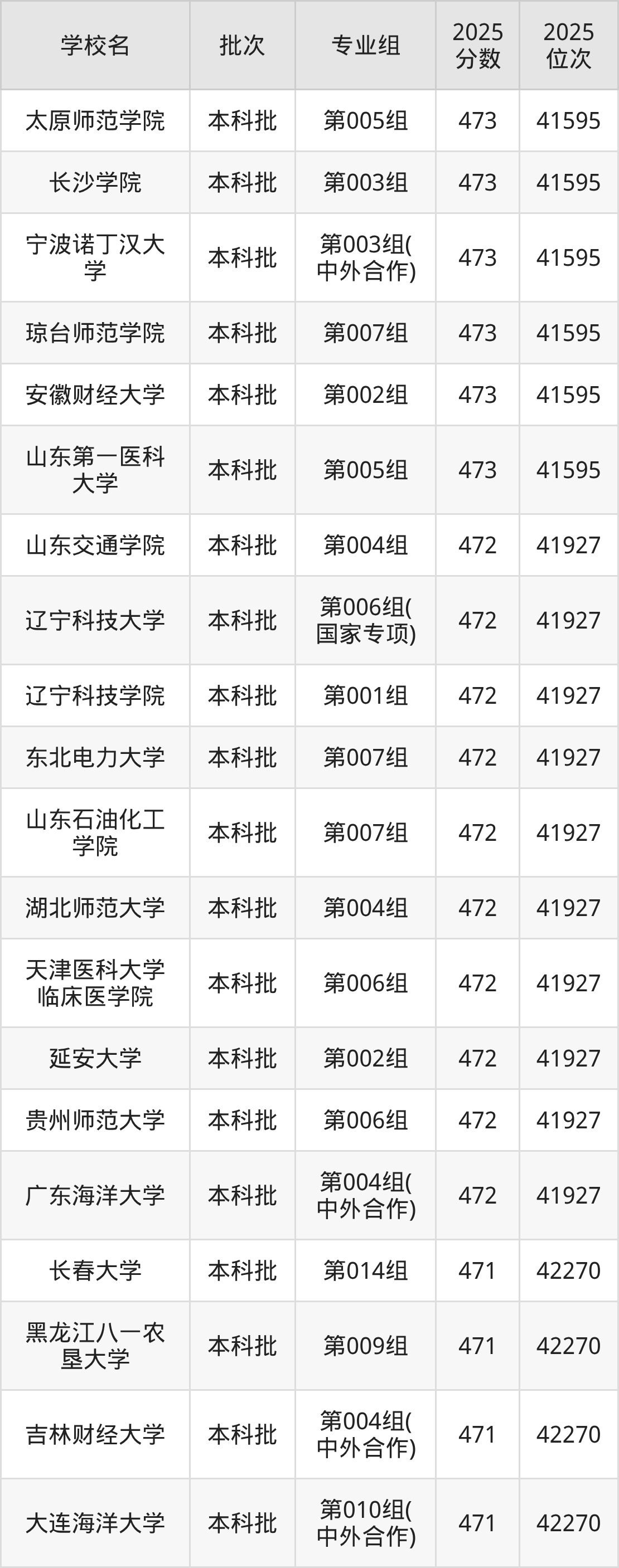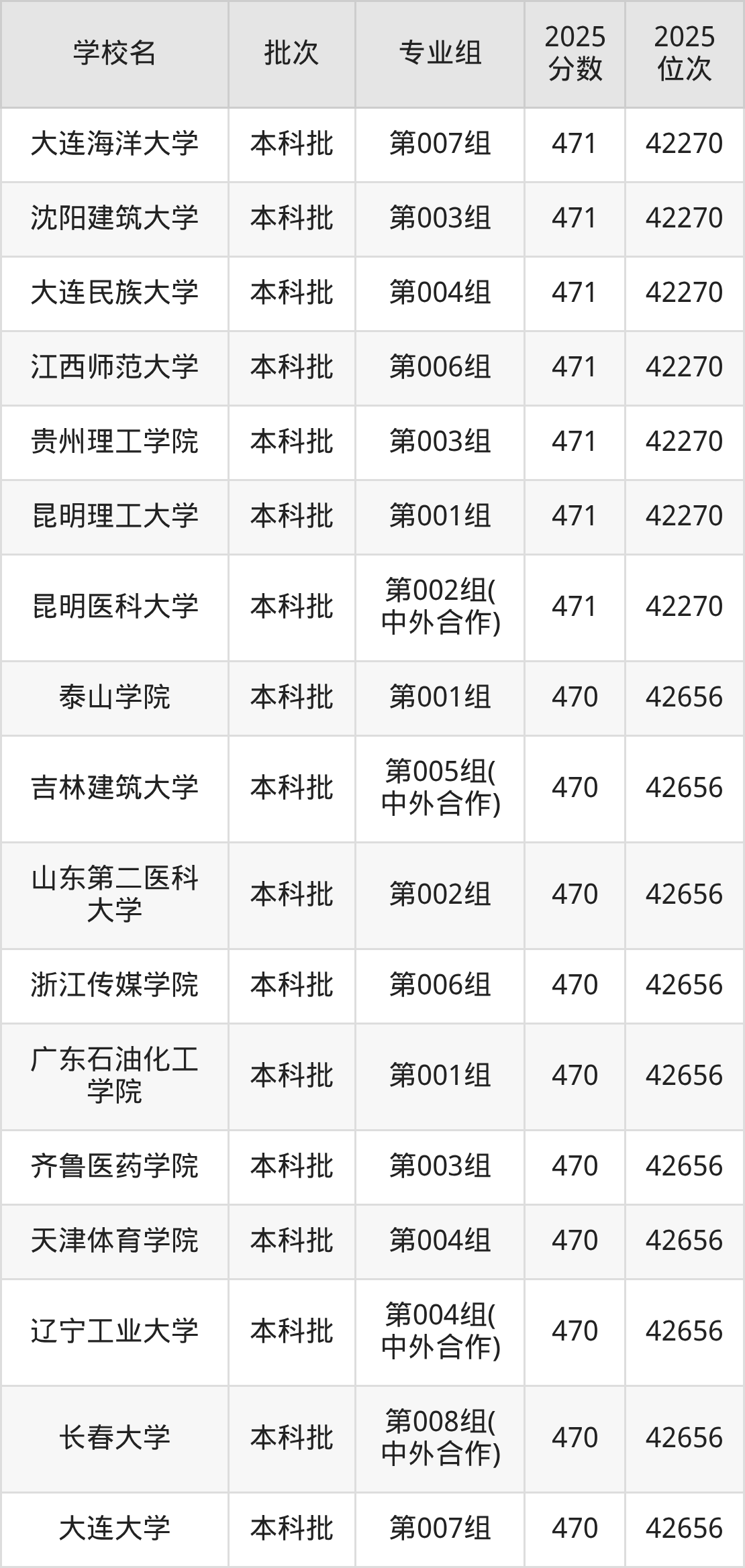 这些都是2026年高考物理类41928名~42270名考生可以报考的大学,更多学校名单如下表所示: