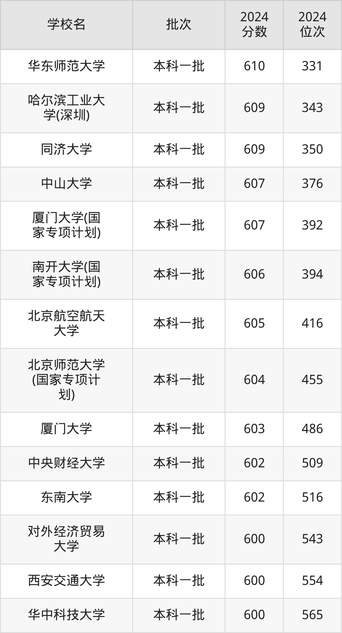 由于高考录取分数线历年波动较大,因此本文以该分数对应的位次排名为大家整理能上的大学名单。