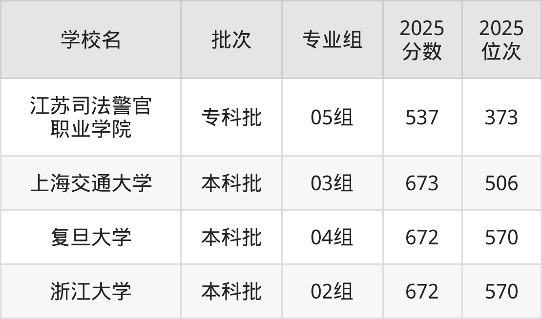 另外录取位次低于该区间(较稳妥)的有江苏司法警官职业学院05组(373名)、江苏司法警官职业学院04组(1195名)等;录取位次高于该区间(可冲)的有西安理工大学01组(62232名)、遵义医科大学01组(62232名)等。