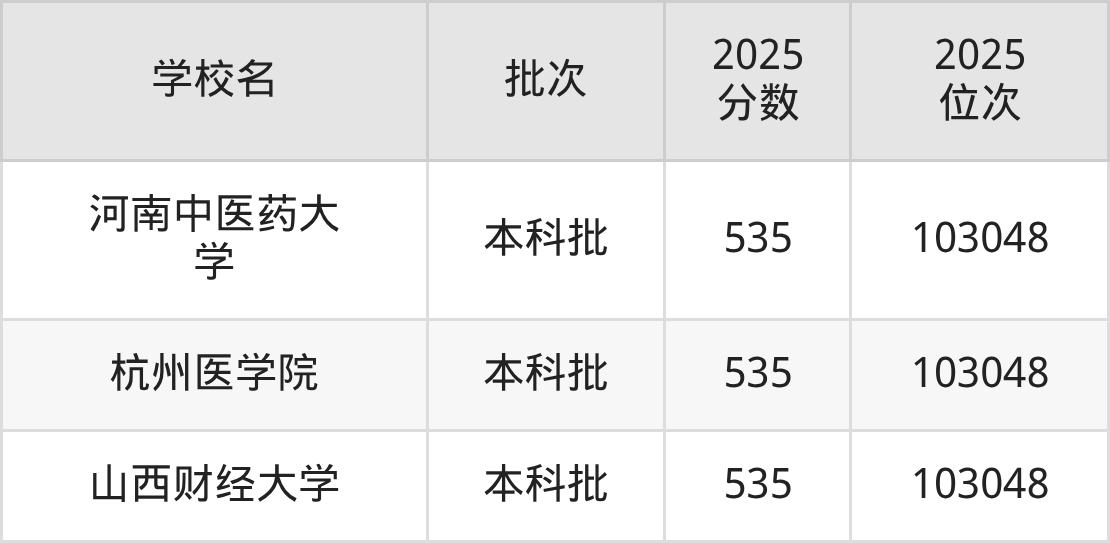 2025年河北高考物理类535分(101527名~103048名)能上的大学有贵州师范学院、山西财经大学、河南中医药大学、蚌埠医科大学等。