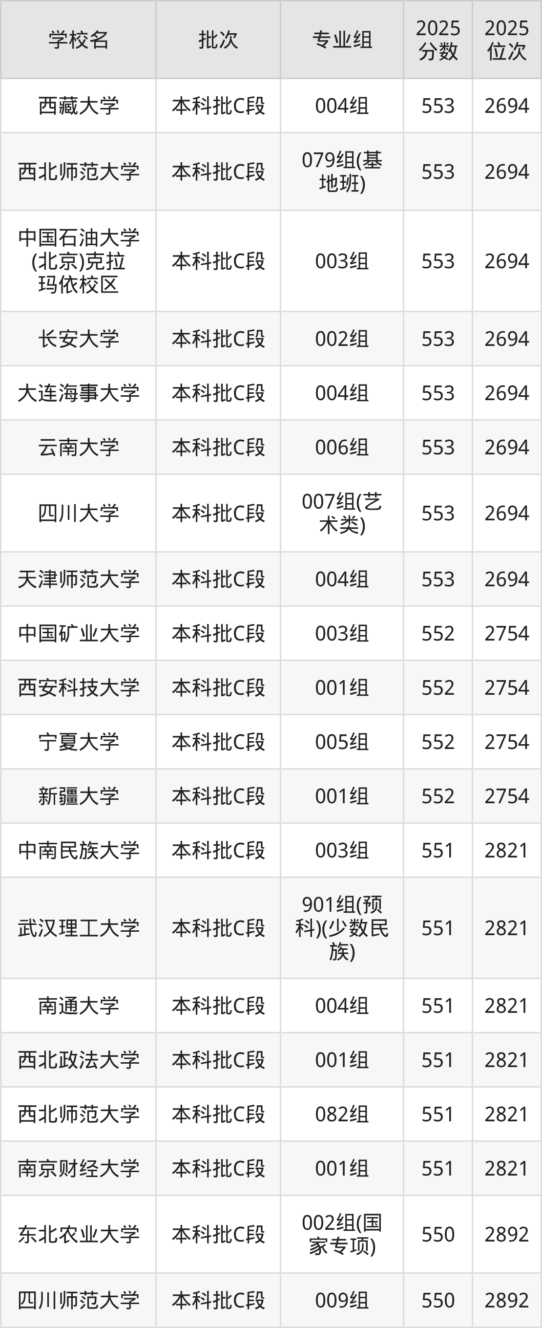 这些都是2026年高考历史类3170名~3246名考生可以报考的大学,更多学校名单如下表所示: