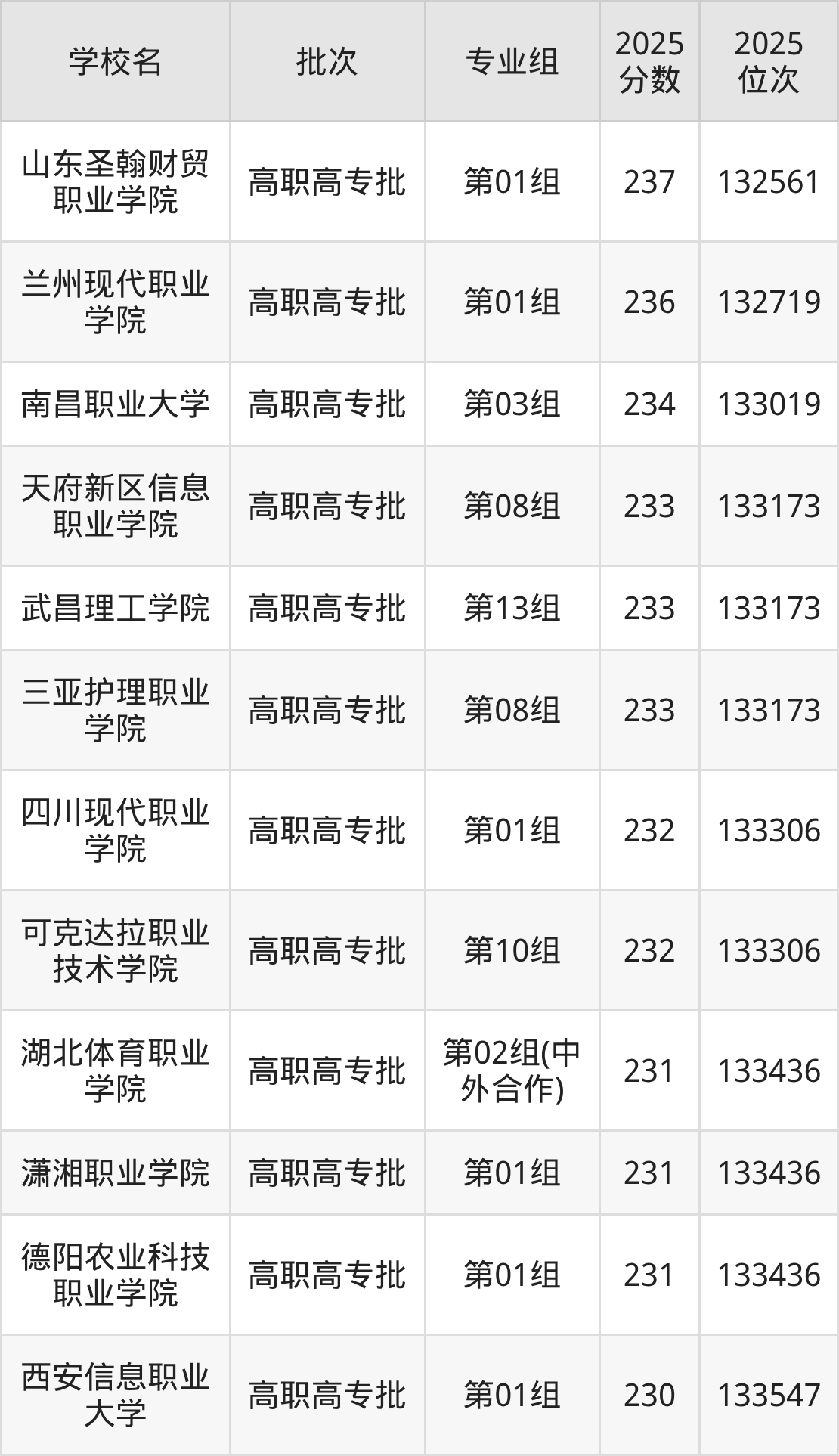 2025年湖北高考历史类233分(133020名~133173名)能上的大学有武昌理工学院第13组、三亚护理职业学院第08组、天府新区信息职业学院第08组。