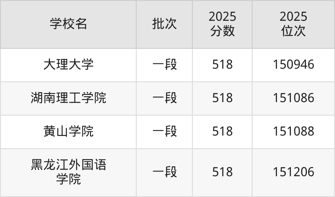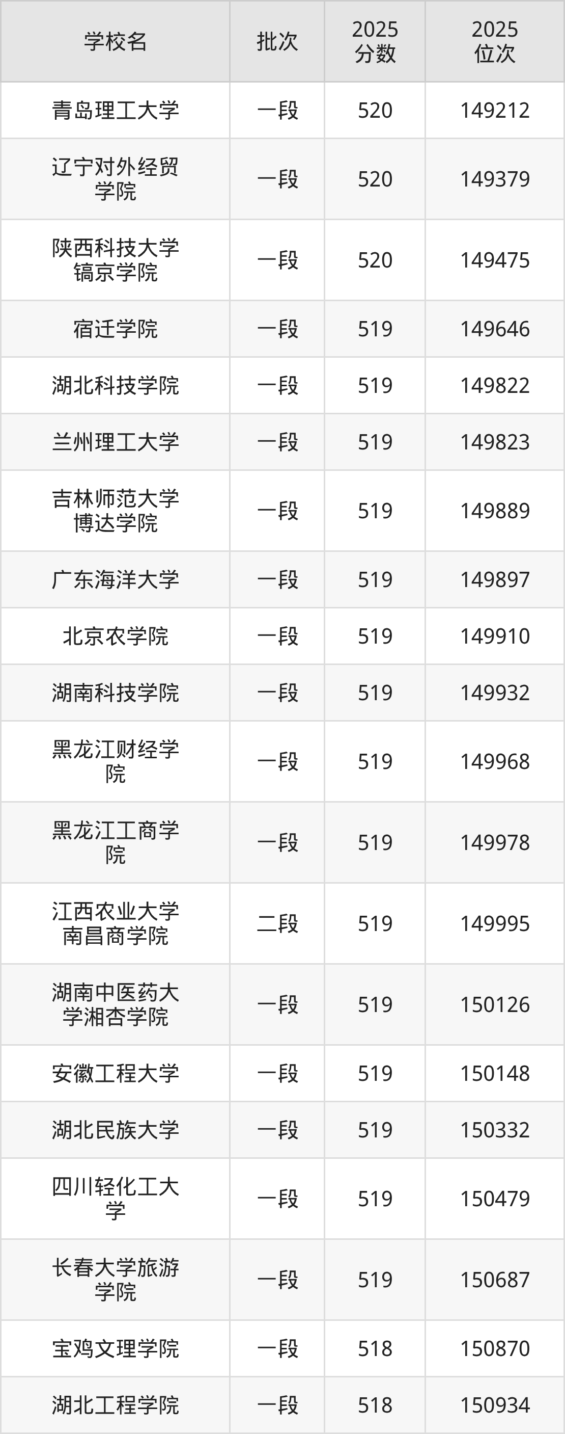 这些都是2026年高考149573名~150846名考生可以报考的大学,更多学校名单如下表所示: