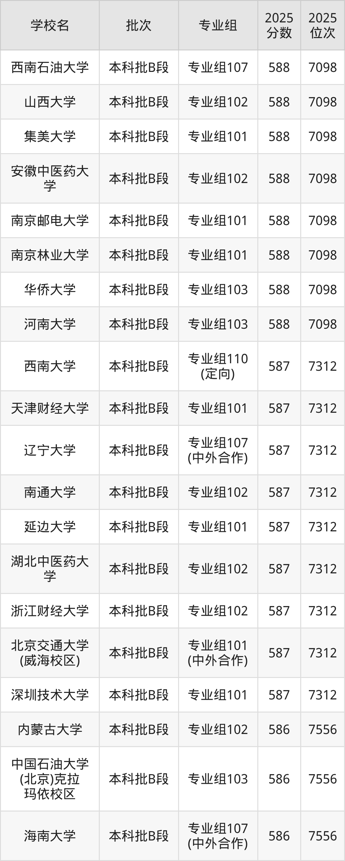 另外录取位次低于该区间(较稳妥)的有中国民航大学专业组102(8073名)、四川师范大学专业组106(8073名)等;录取位次高于该区间(可冲)的有广东财经大学专业组101(7556名)、上海海洋大学专业组101(7556名)等。