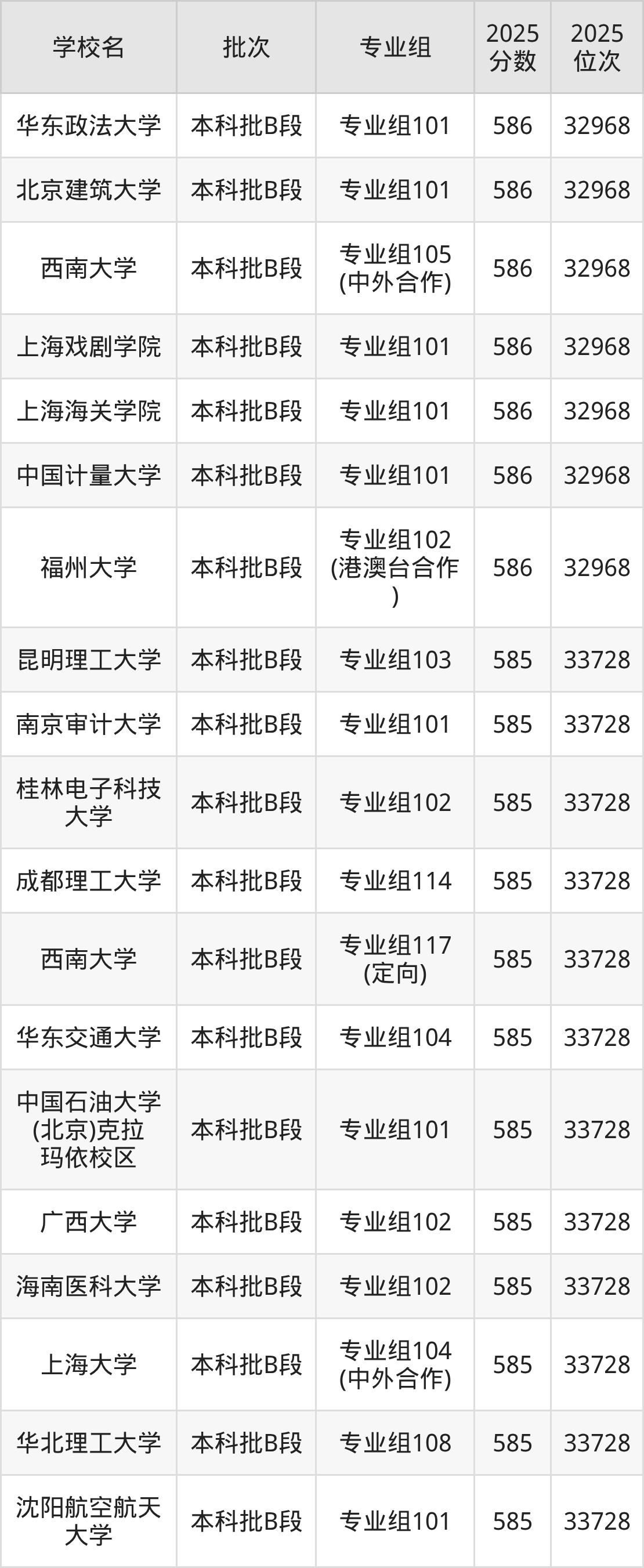 这些都是2026年高考物理类32969名~33728名考生可以报考的大学,更多学校名单如下表所示: