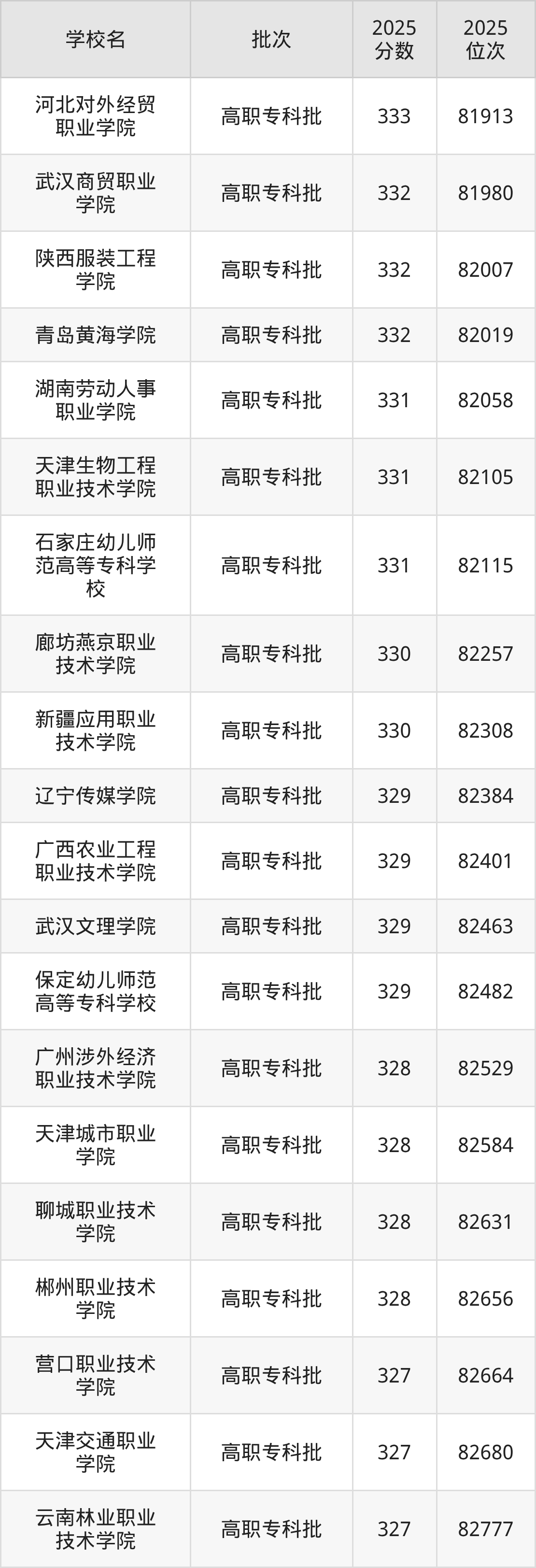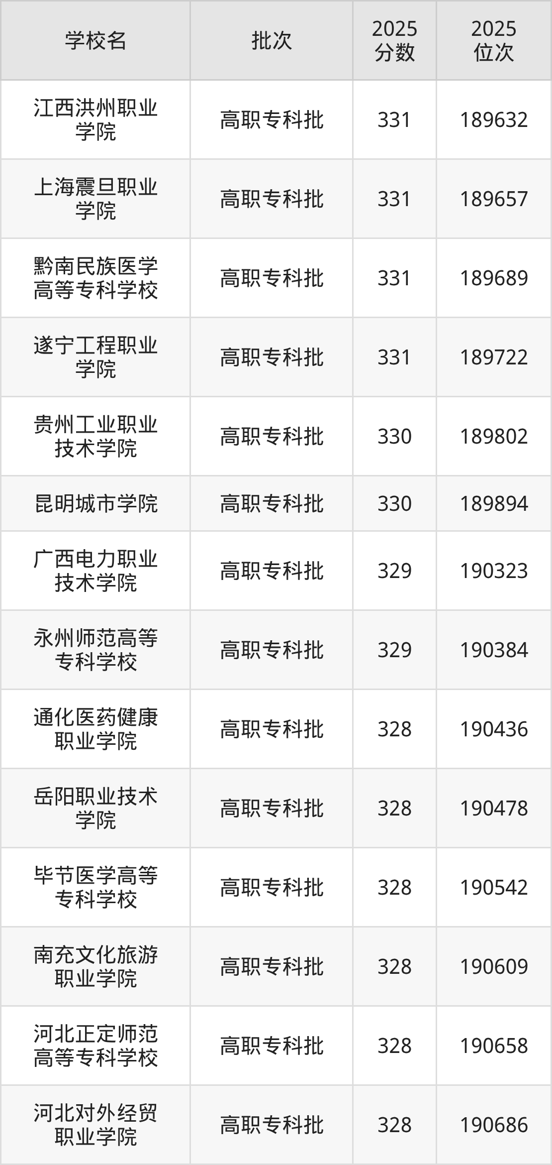 2025年贵州高考物理类329分(190062名~190408名)能上的大学有广西电力职业技术学院、永州师范高等专科学校。