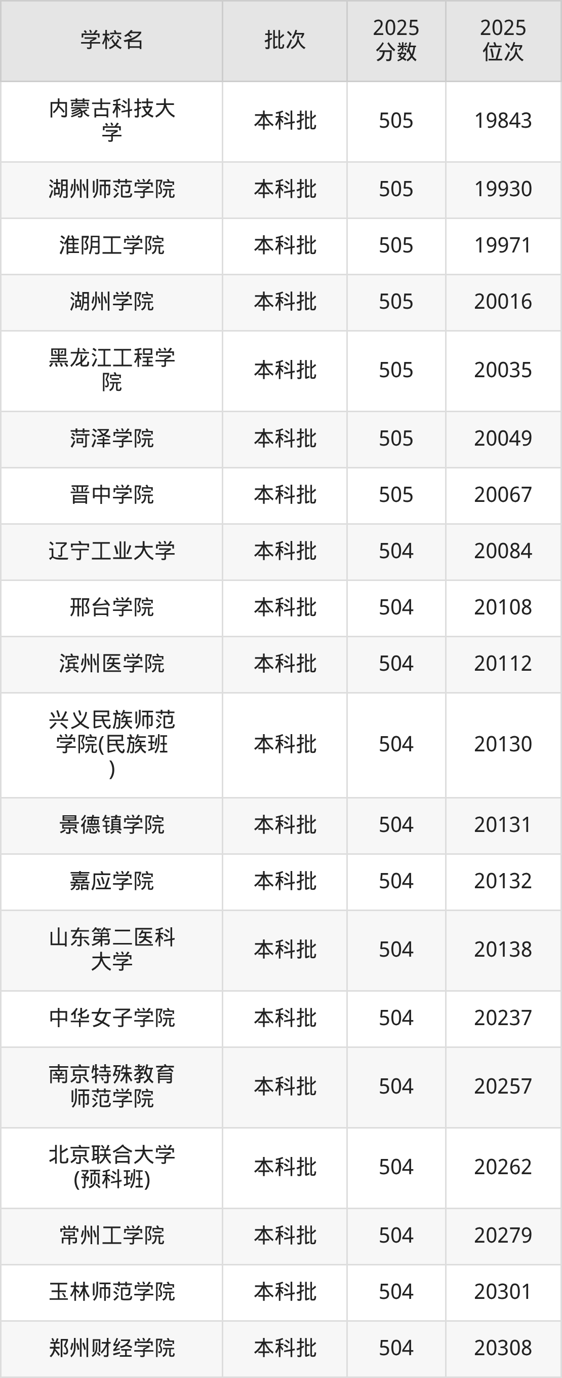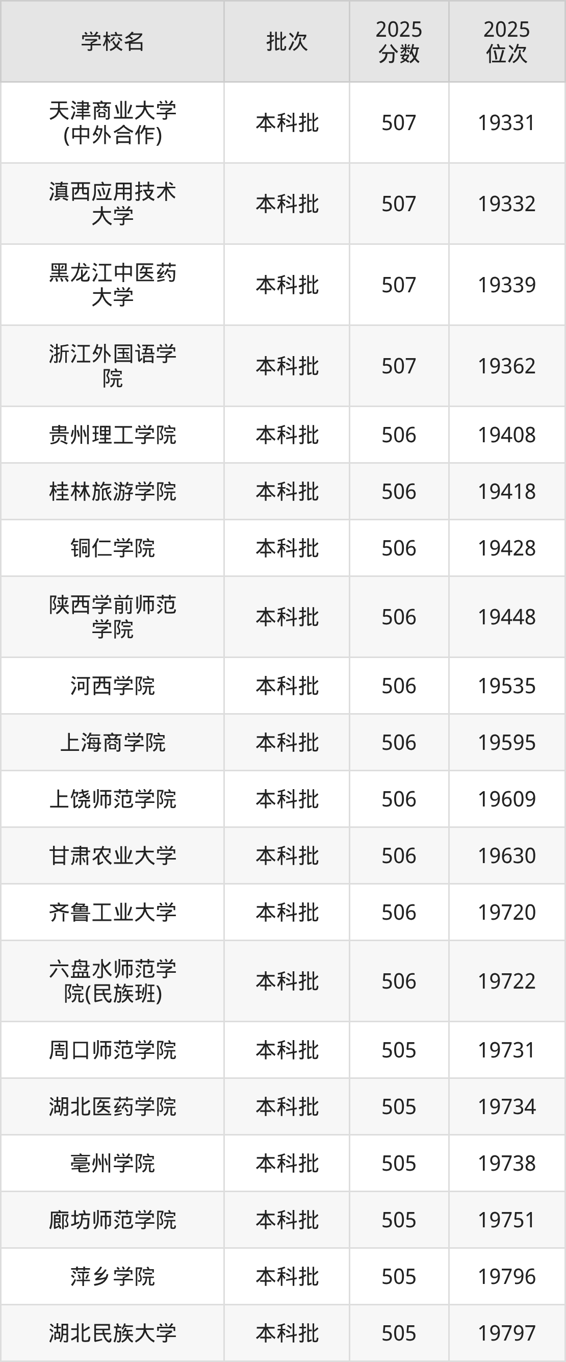 2025年贵州高考历史类505分(19726名~20069名)能上的大学有黑龙江工程学院、淮阴工学院、菏泽学院、萍乡学院等。