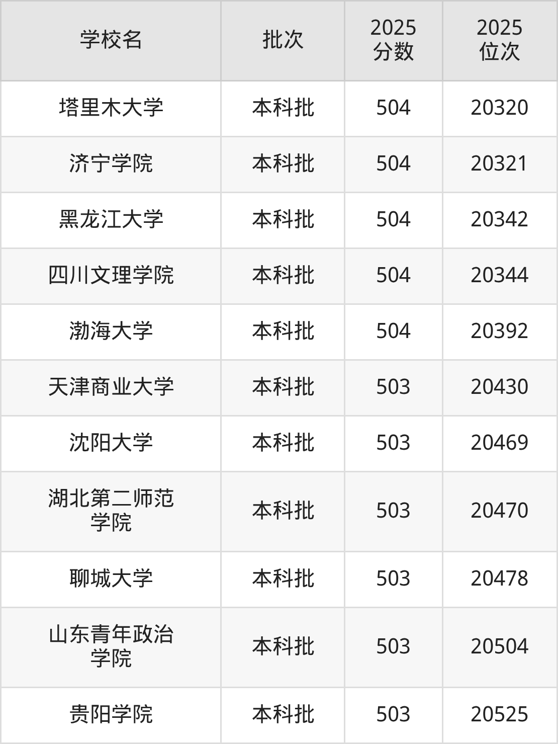 这些都是2026年高考历史类19726名~20069名考生可以报考的大学,更多学校名单如下表所示: