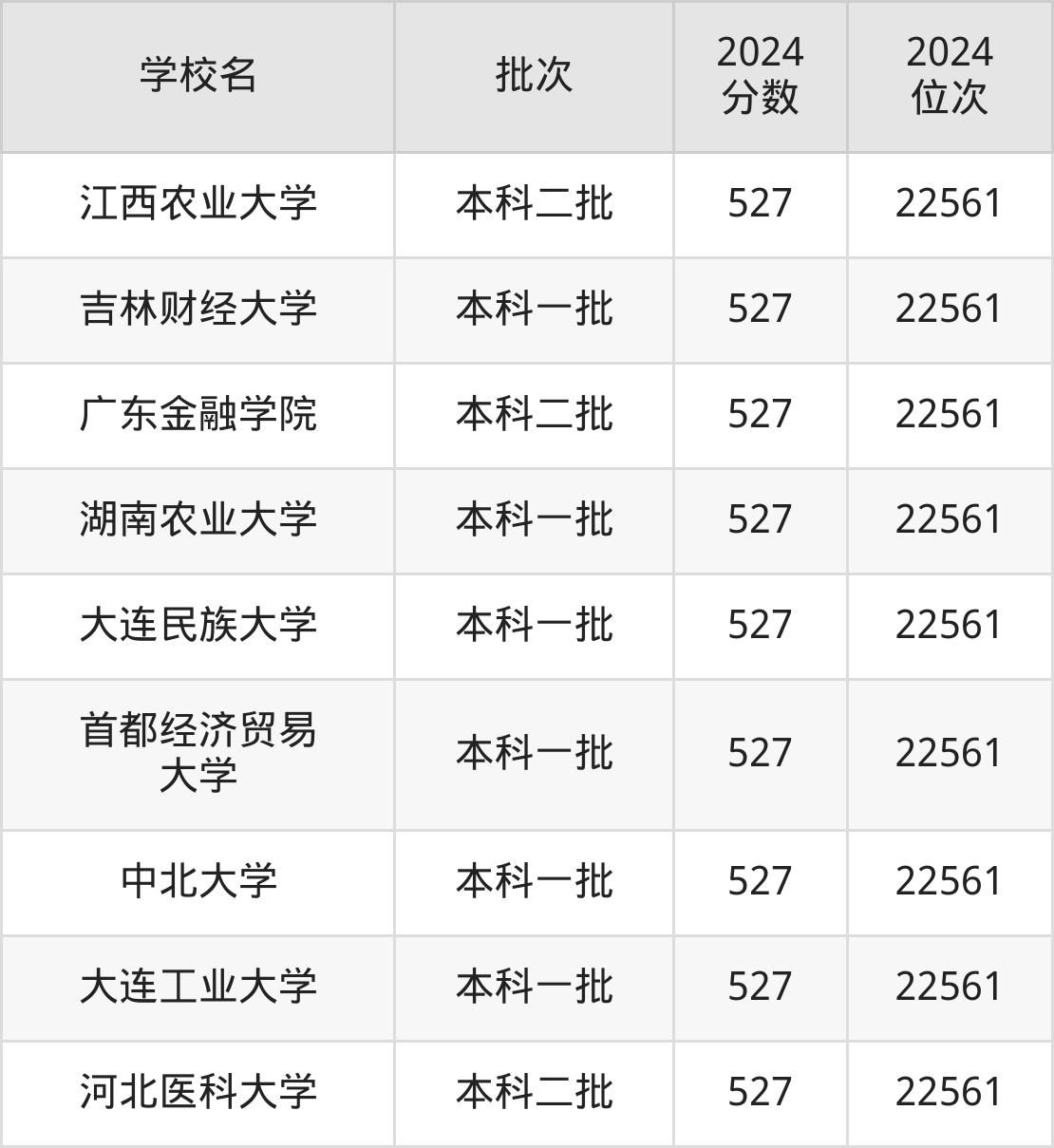 这些都是2025年高考文科21554名~22068名考生可以报考的大学,更多学校名单如下表所示: