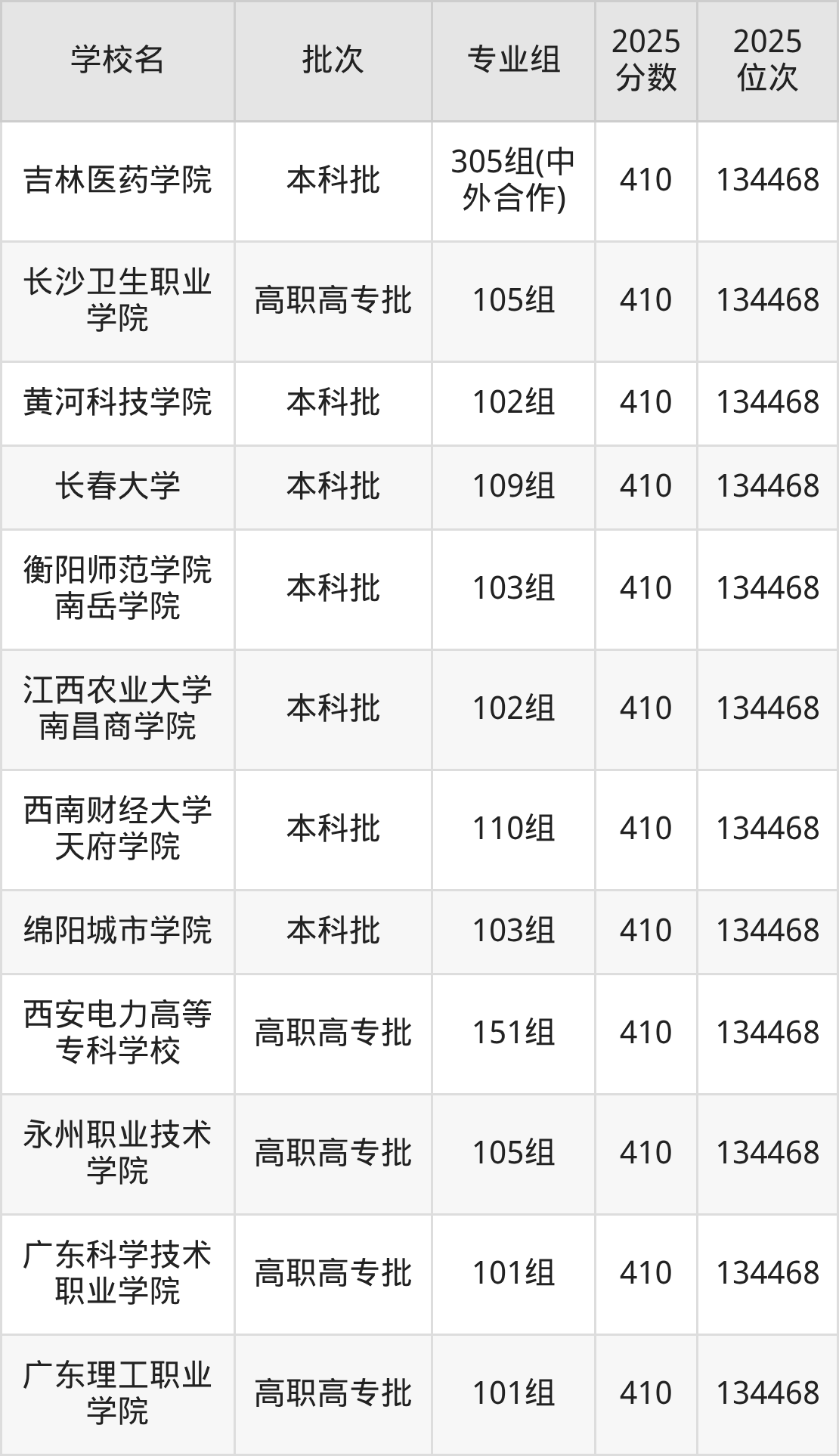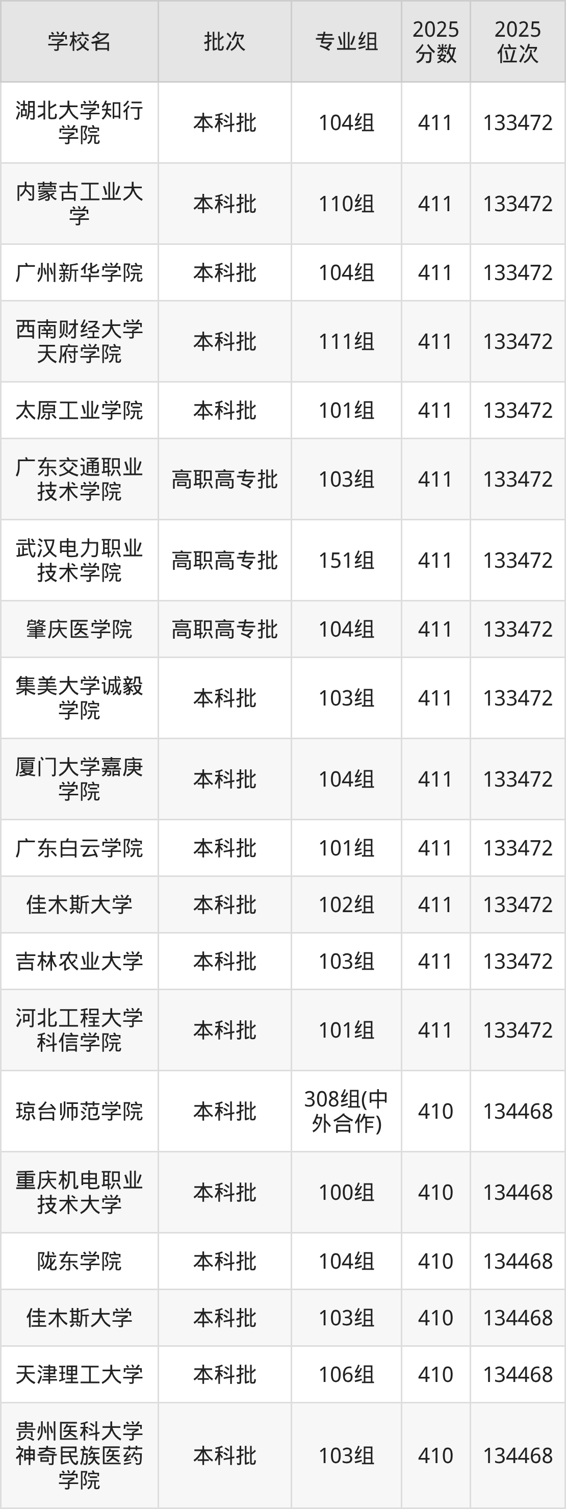 2025年广西高考物理类410分(133473名~134468名)能上的大学有天津理工大学106组、佳木斯大学103组、陇东学院104组、长春大学109组等。