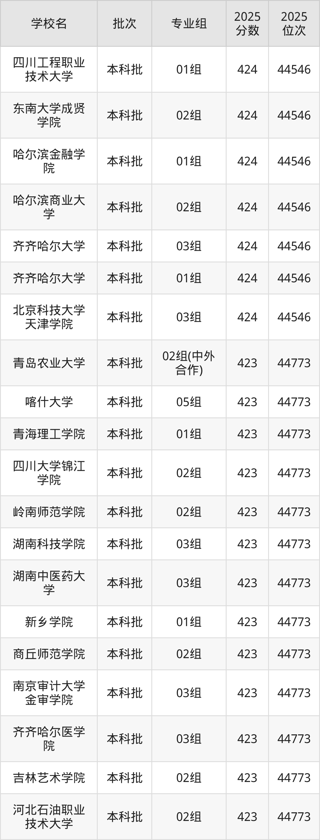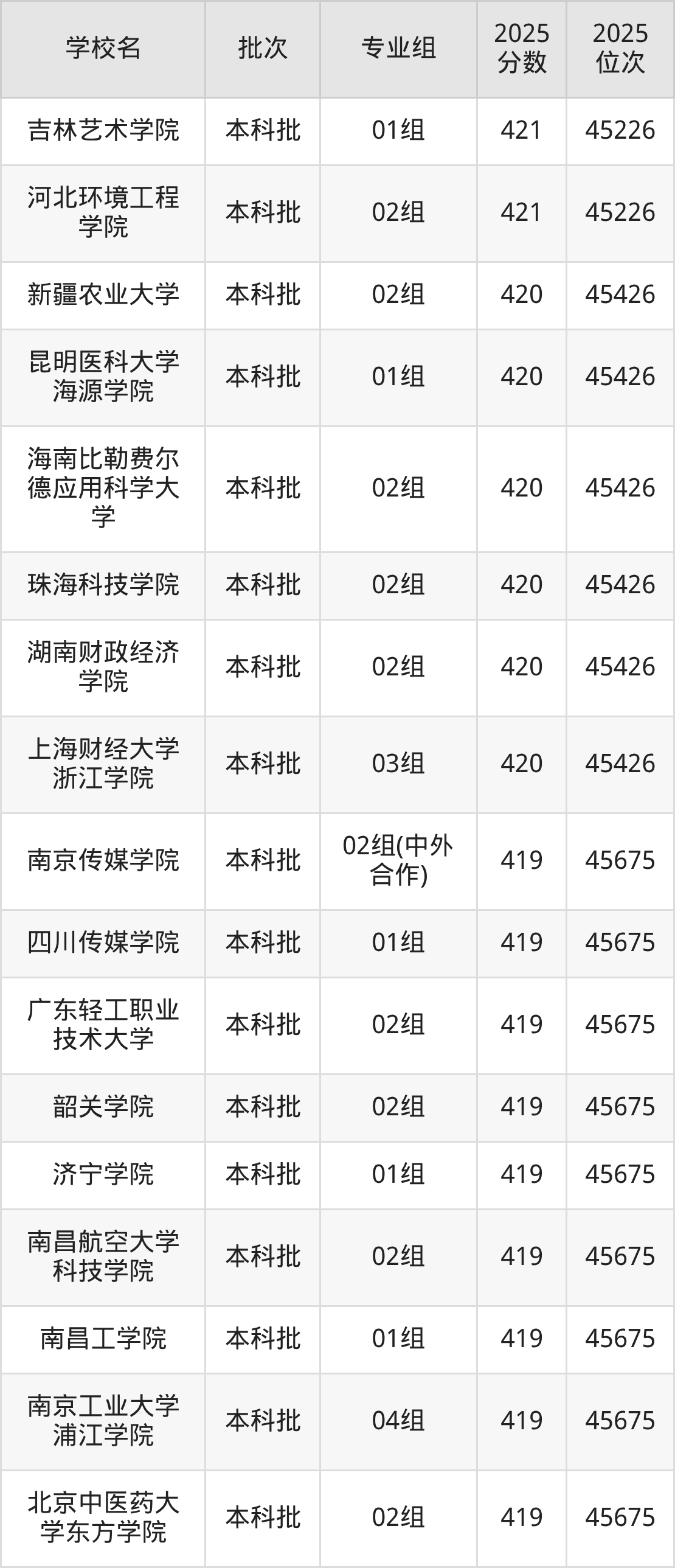 这些都是2026年高考45013名~45226名考生可以报考的大学,更多学校名单如下表所示: