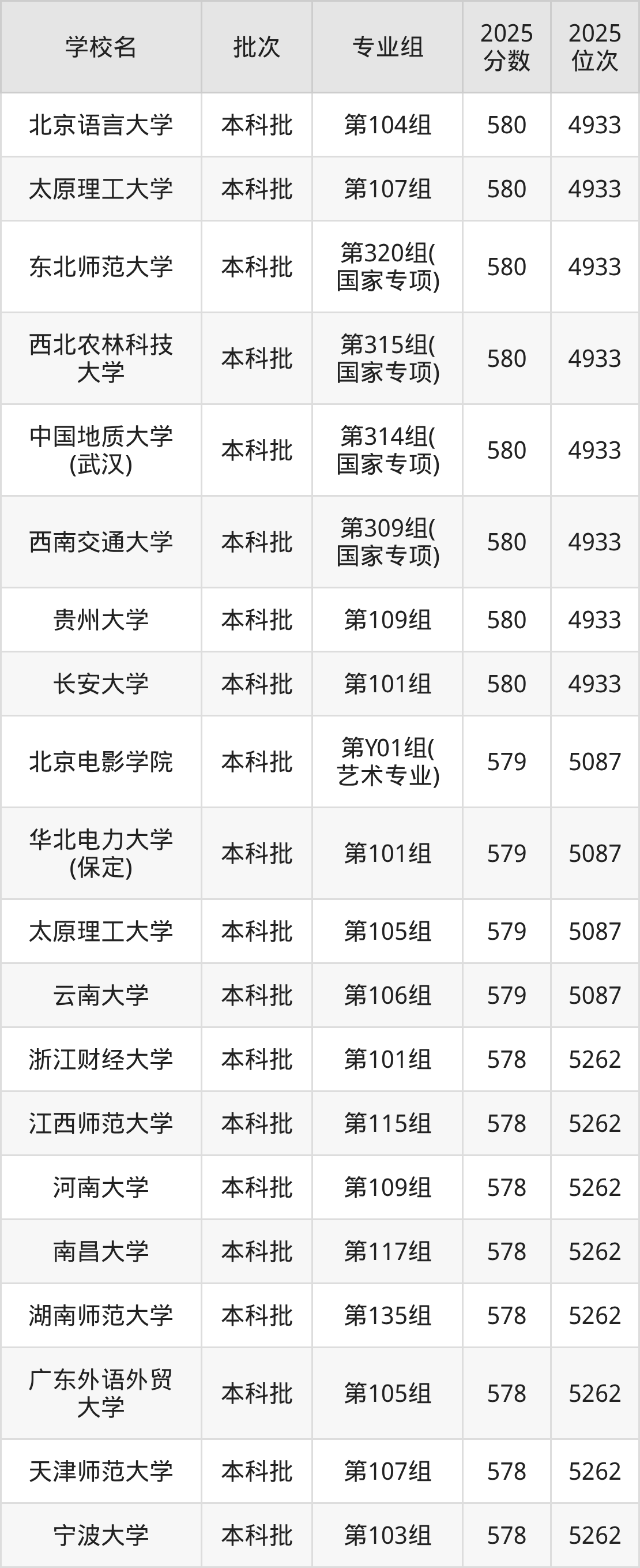 这些都是2026年高考历史类5434名~5596名考生可以报考的大学,更多学校名单如下表所示:
