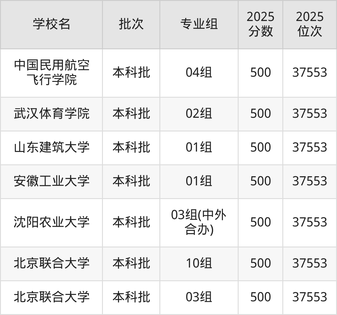 这些都是2026年高考36989名~37268名考生可以报考的大学,更多学校名单如下表所示: