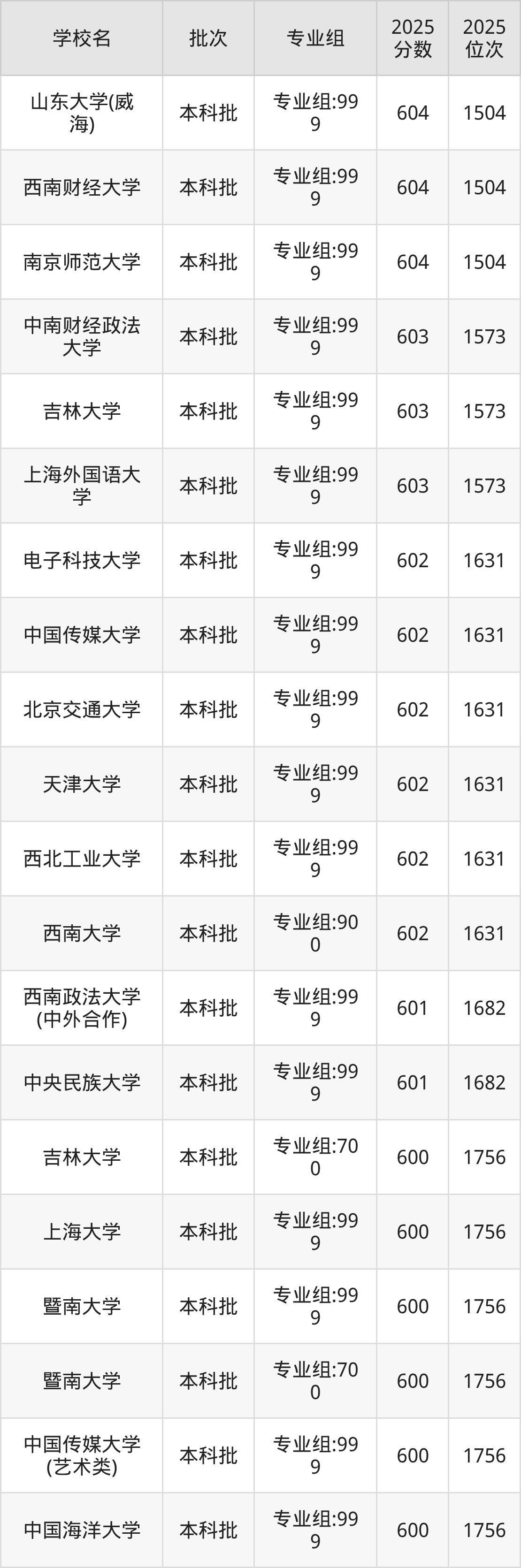 由于高考录取分数线历年波动较大,因此本文以该分数对应的位次排名为大家整理能上的大学名单。