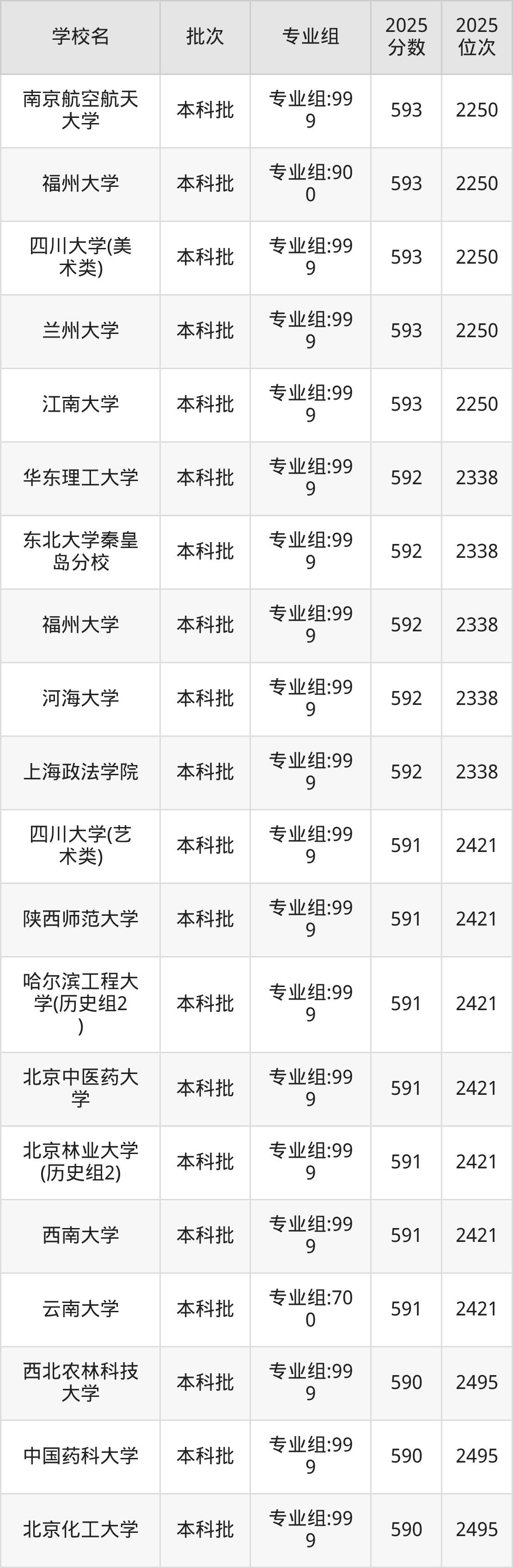 这些都是2026年高考历史类1947名~2018名考生可以报考的大学,更多学校名单如下表所示: