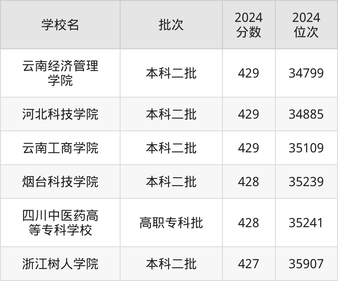 这些都是2025年高考文科35136名~35547名考生可以报考的大学,更多学校名单如下表所示: