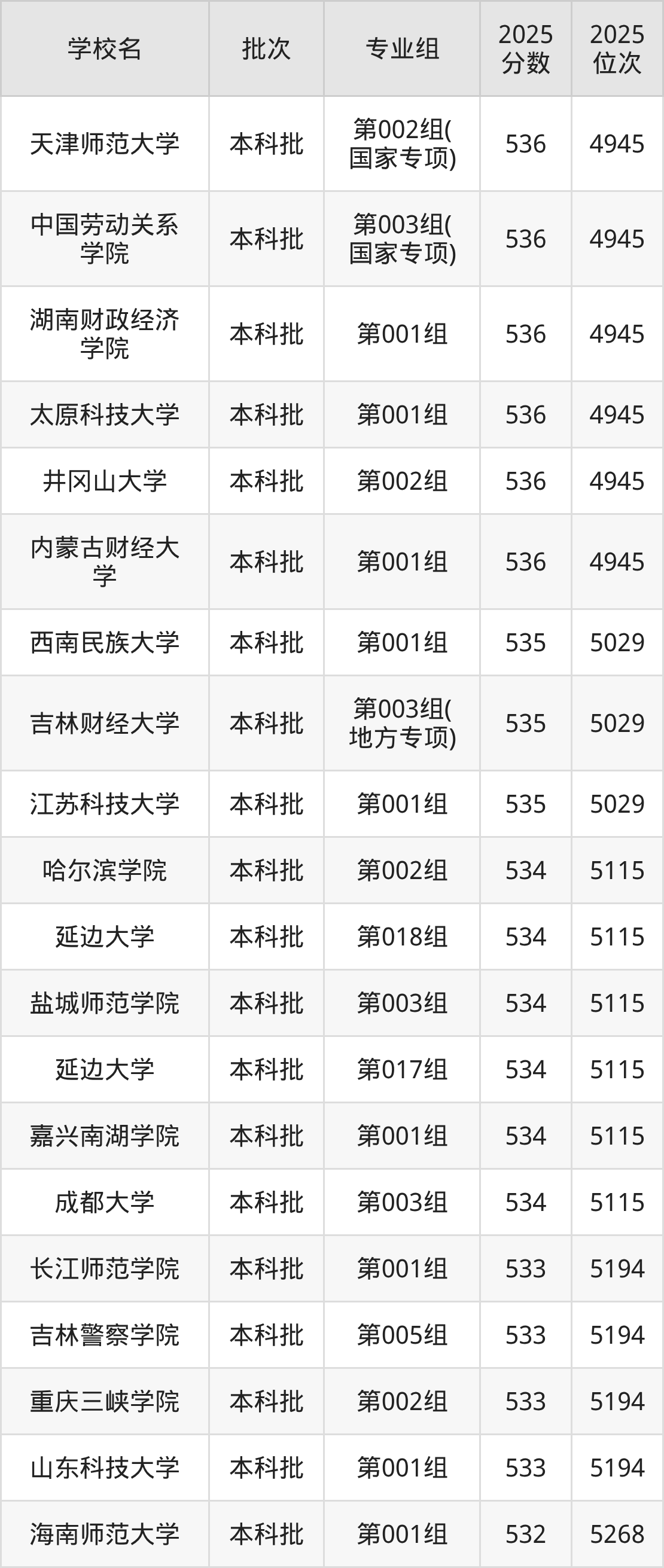 二、吉林529分位次排名能上的大学