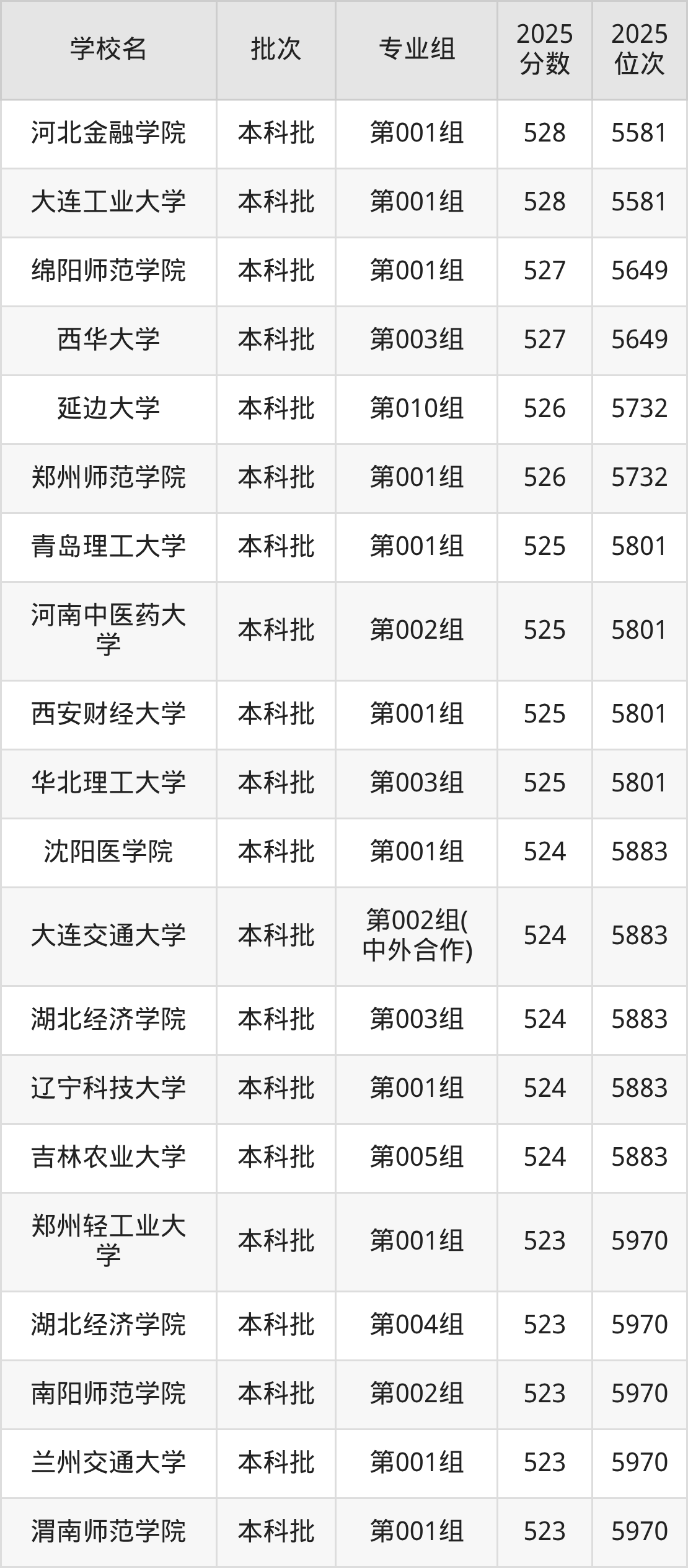 另外录取位次低于该区间(较稳妥)的有河北金融学院第001组(5581名)、大连工业大学第001组(5581名)等;录取位次高于该区间(可冲)的有山东航空学院第001组(5436名)、温州肯恩大学第001组(中外合作)(5436名)等。