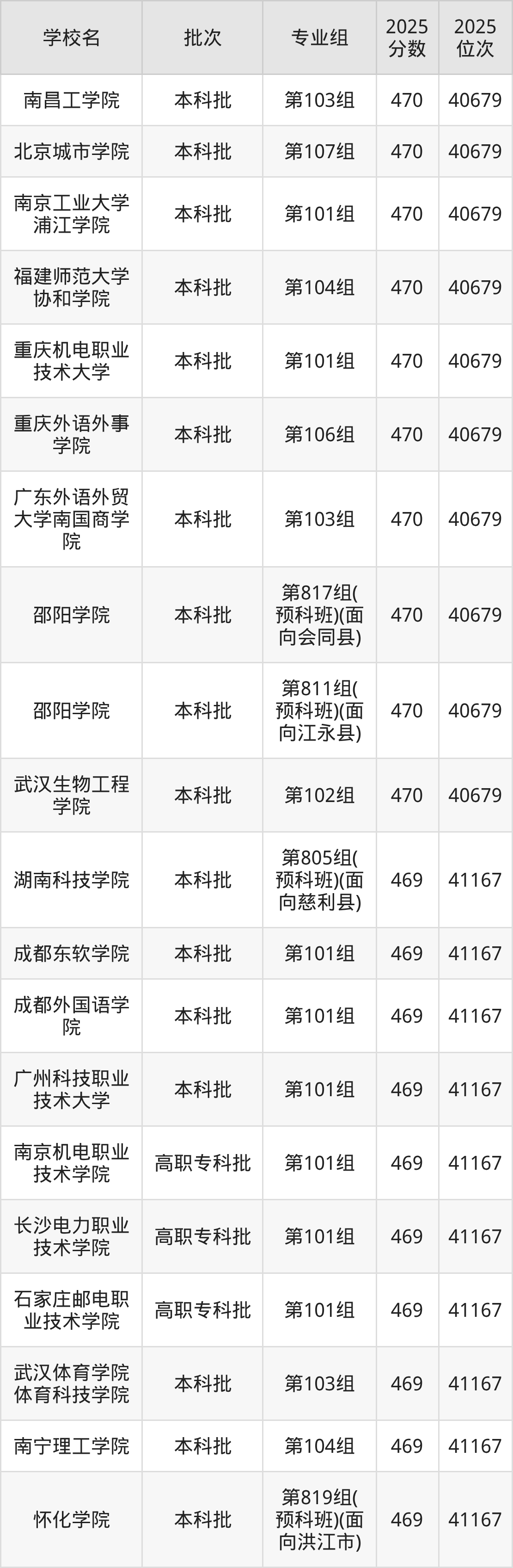 这些都是2026年高考历史类41168名~41633名考生可以报考的大学,更多学校名单如下表所示: