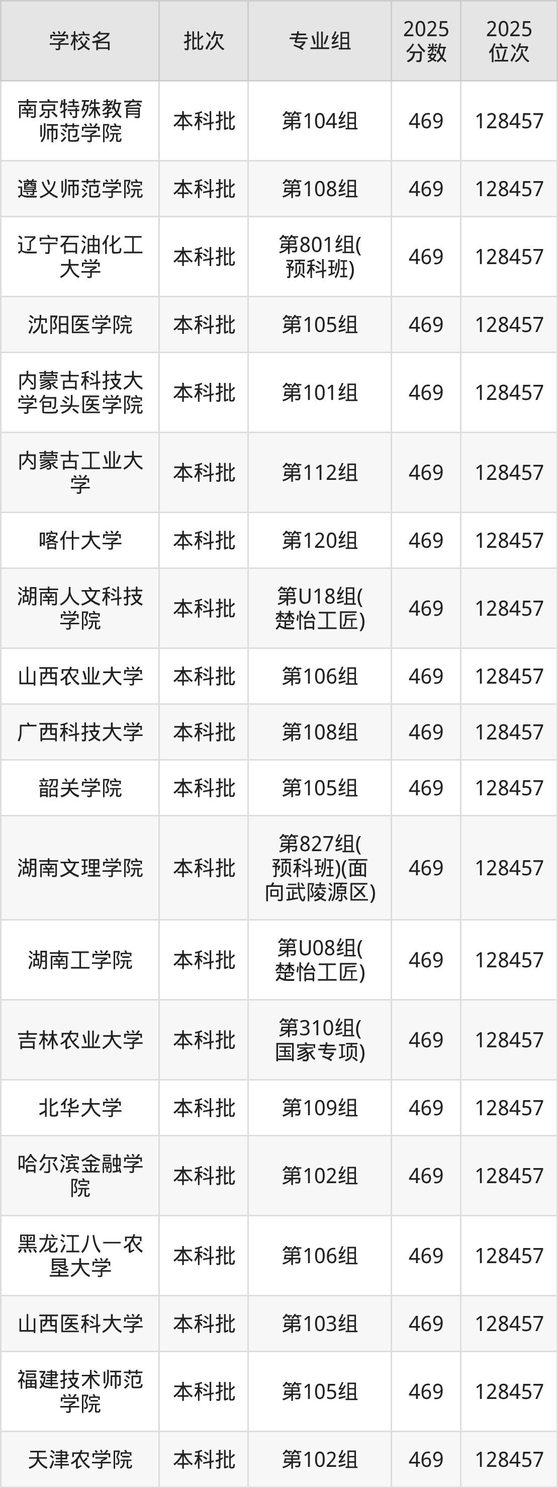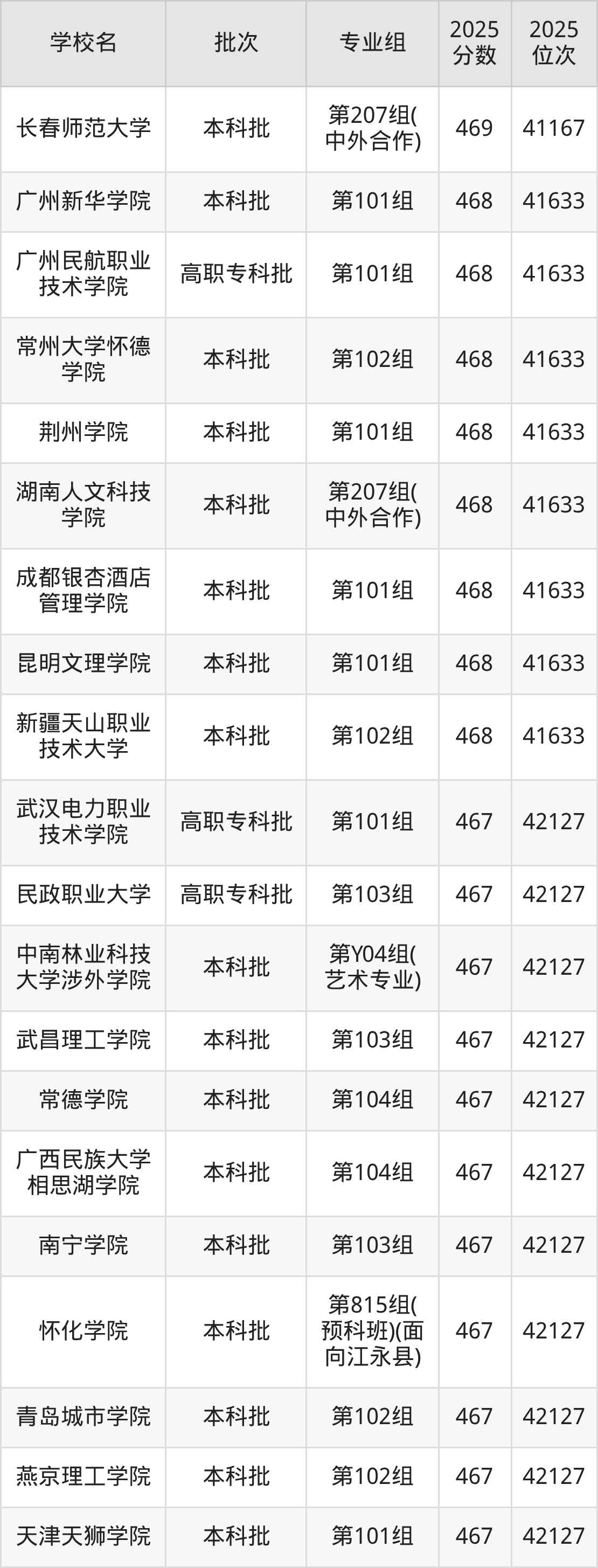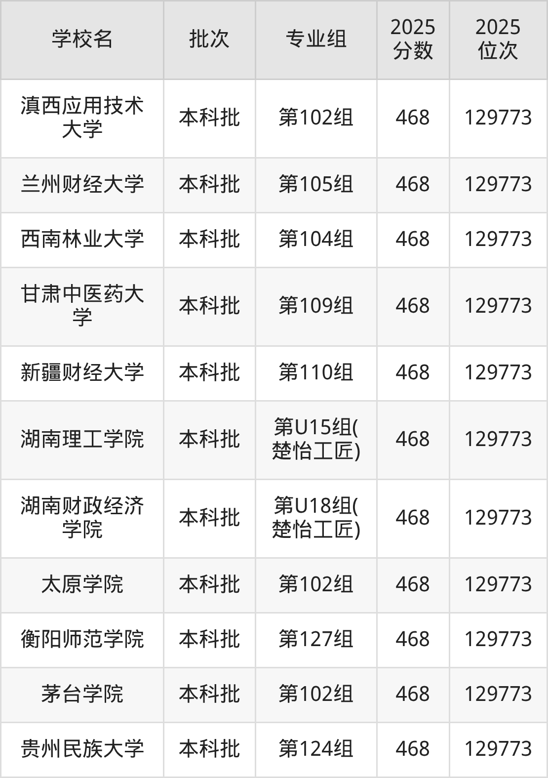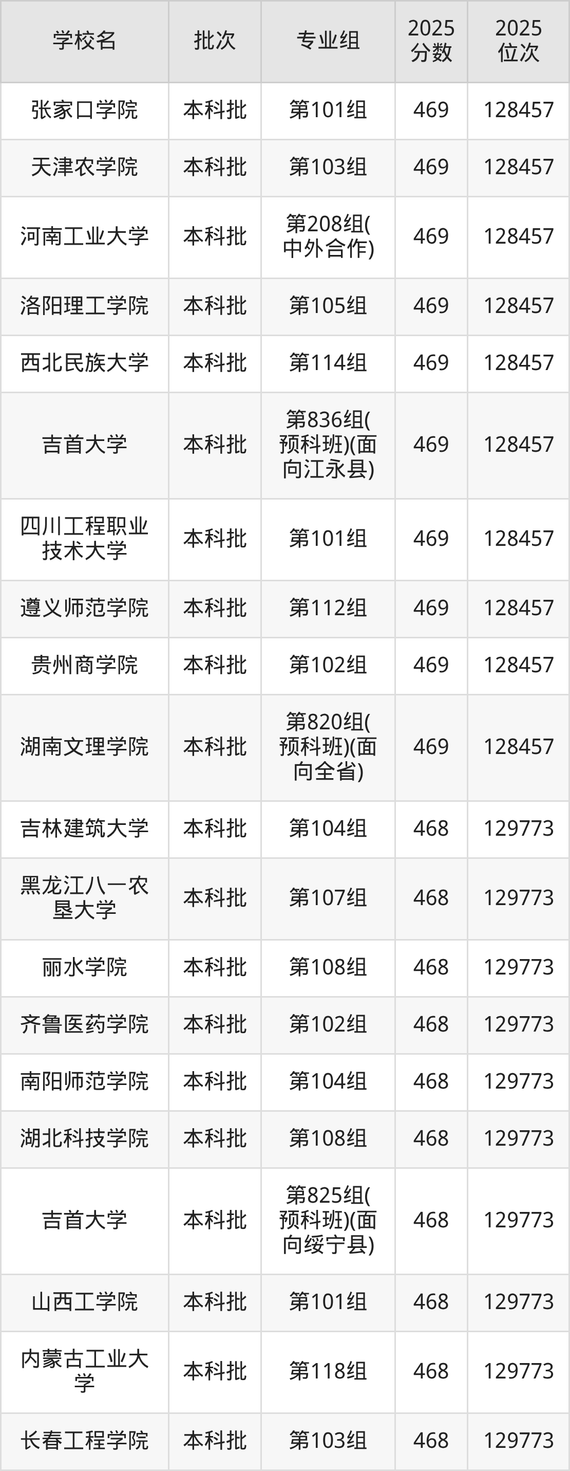 2025年湖南高考物理类468分(128458名~129773名)能上的大学有太原学院第102组、山西工学院第101组、内蒙古工业大学第118组、长春工程学院第103组等。