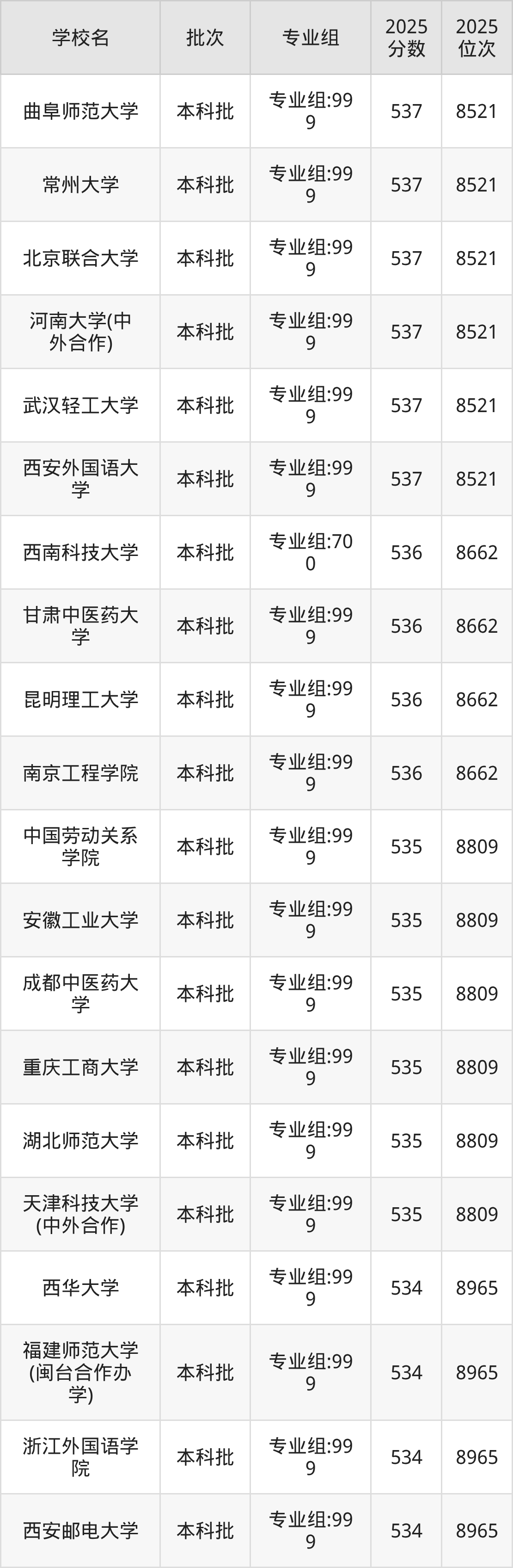 这些都是2026年高考历史类8966名~9118名考生可以报考的大学,更多学校名单如下表所示: