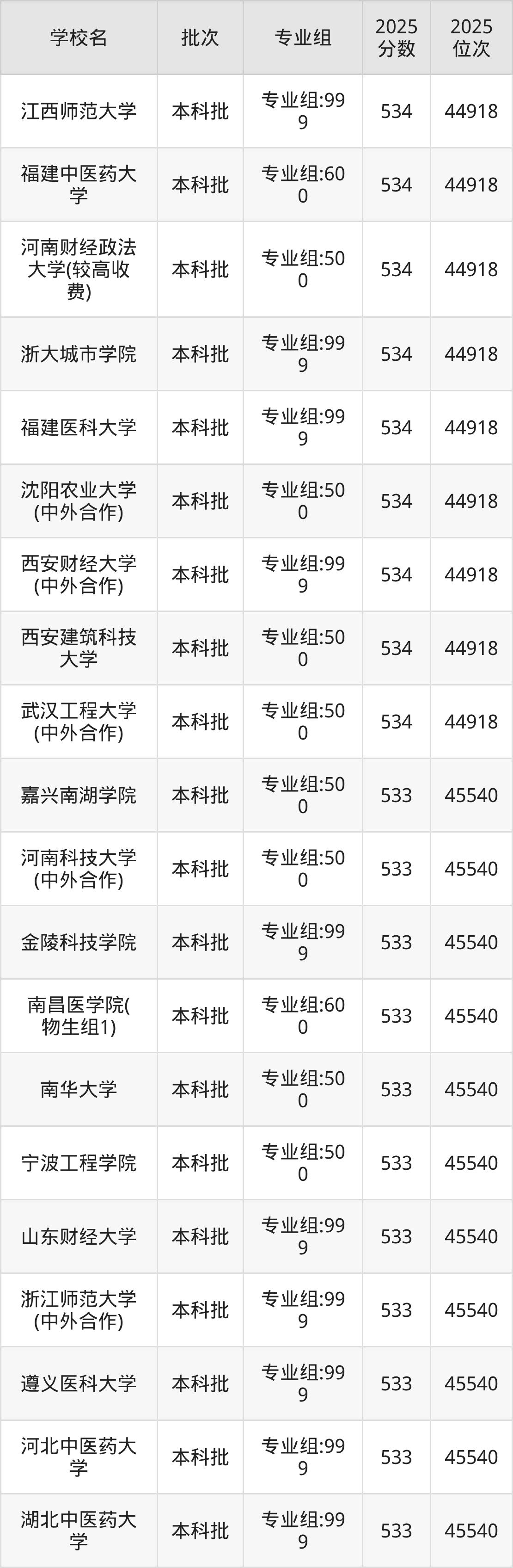 这些都是2026年高考物理类44919名~45540名考生可以报考的大学,更多学校名单如下表所示: