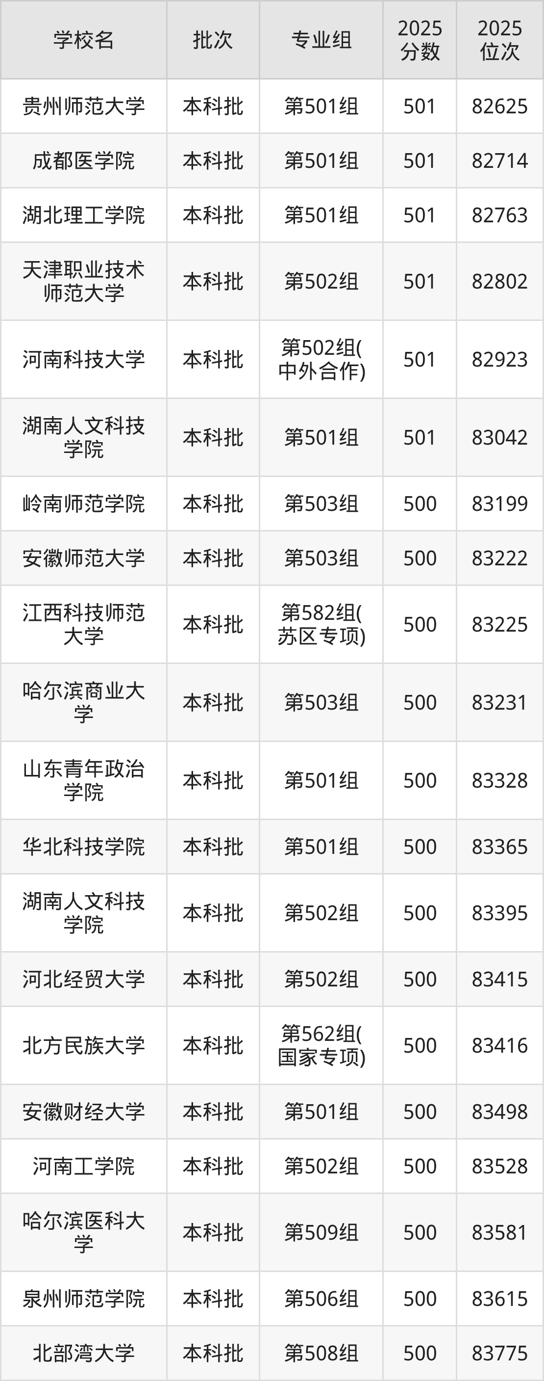 这些都是2026年高考物理类83106名~84381名考生可以报考的大学,更多学校名单如下表所示: