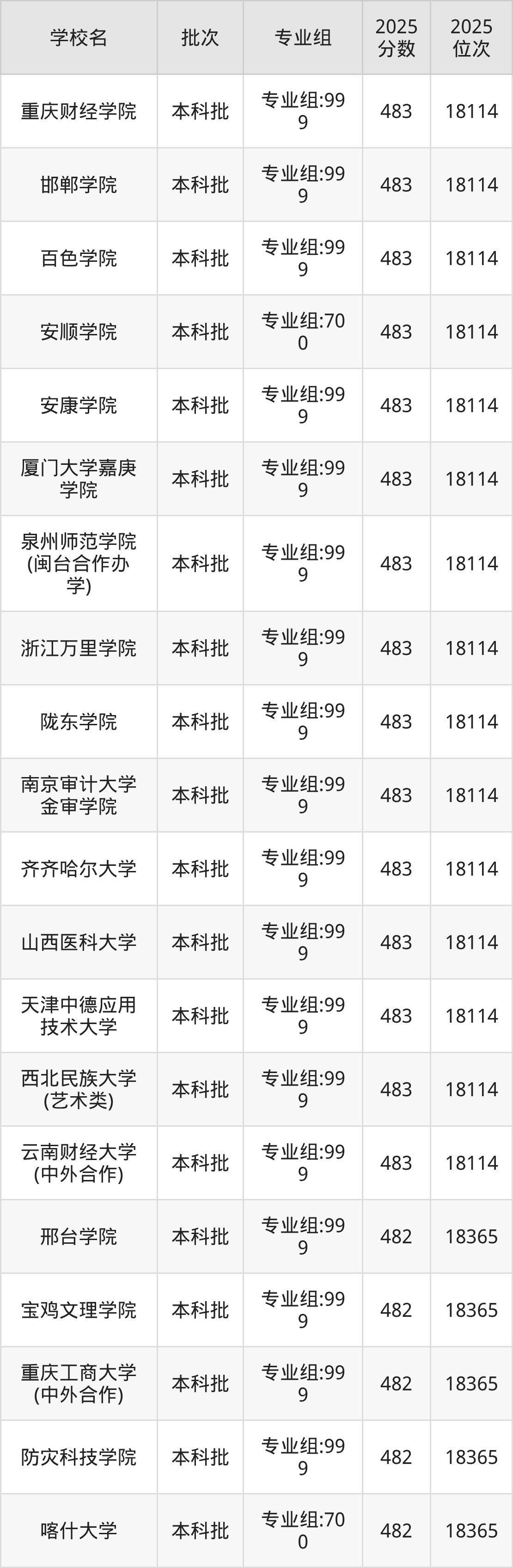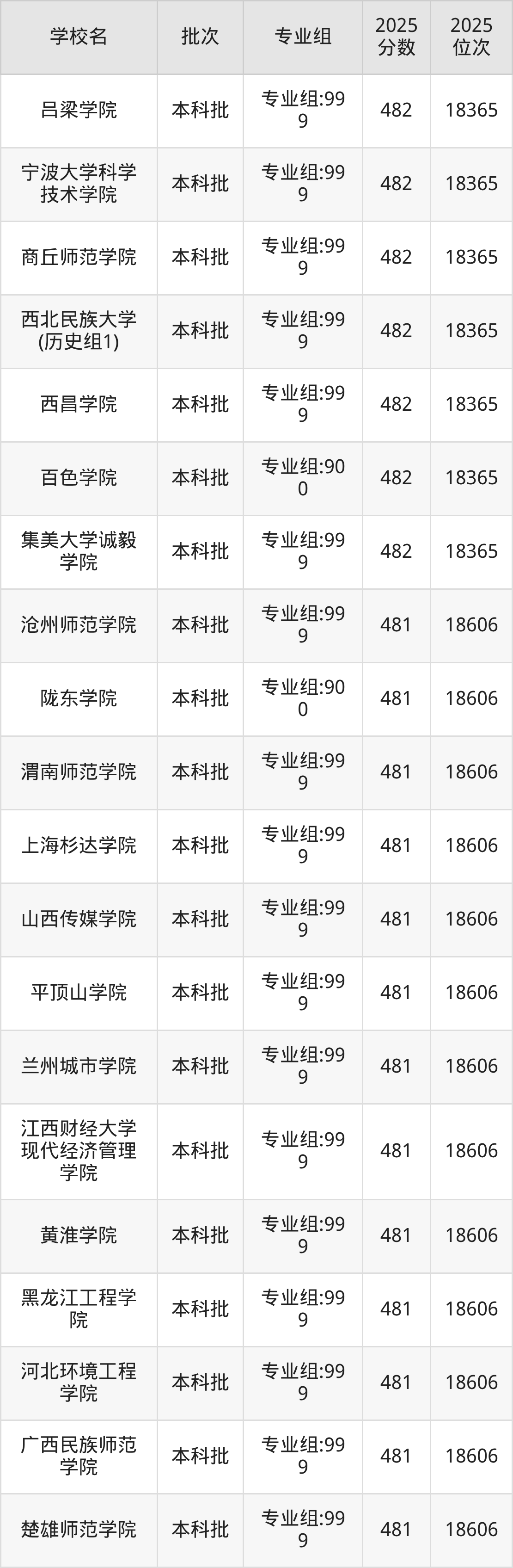 这些都是2026年高考历史类18607名~18810名考生可以报考的大学,更多学校名单如下表所示: