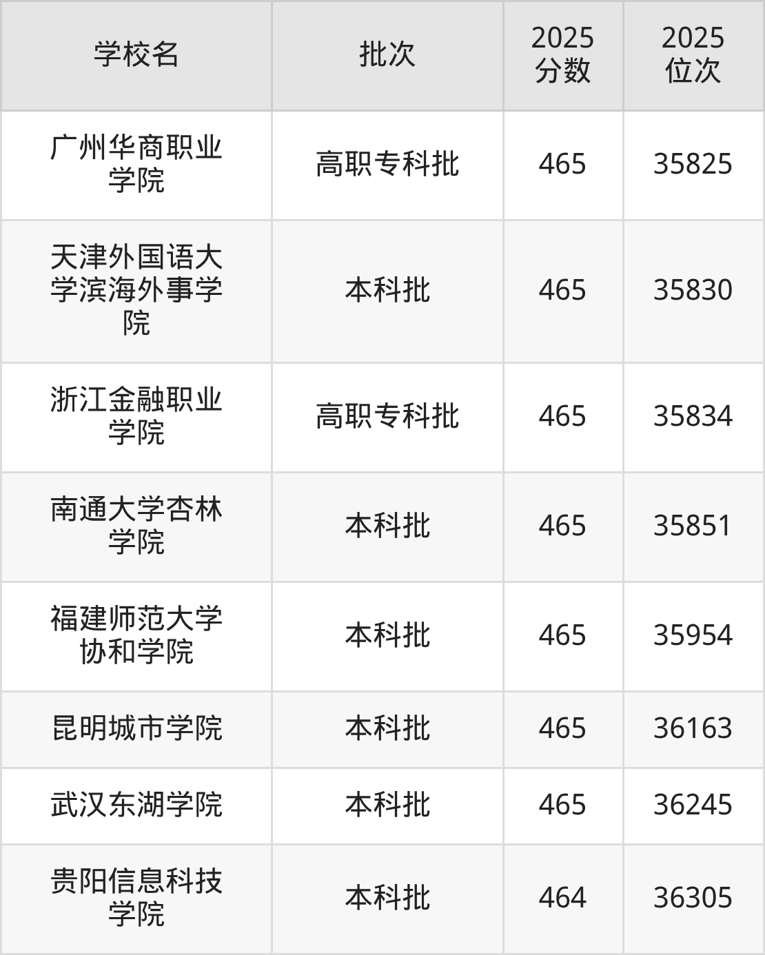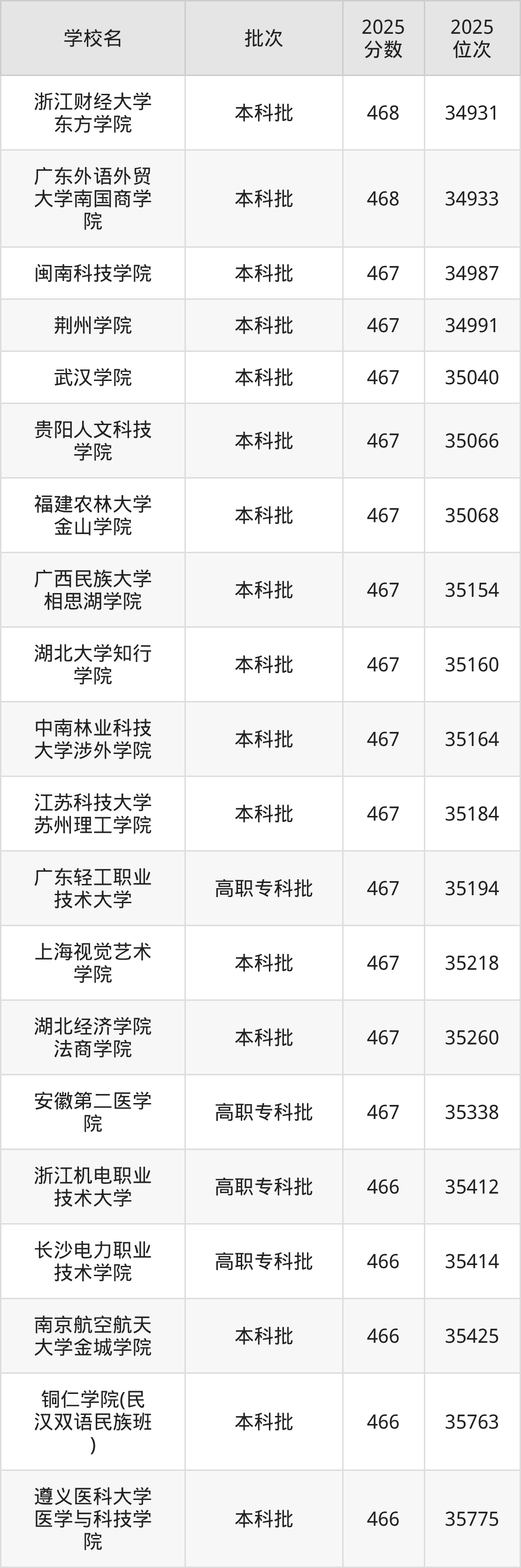 2025年贵州高考历史类466分(35381名~35813名)能上的大学有长沙电力职业技术学院、铜仁学院(民汉双语民族班)、浙江机电职业技术大学、南京航空航天大学金城学院等。